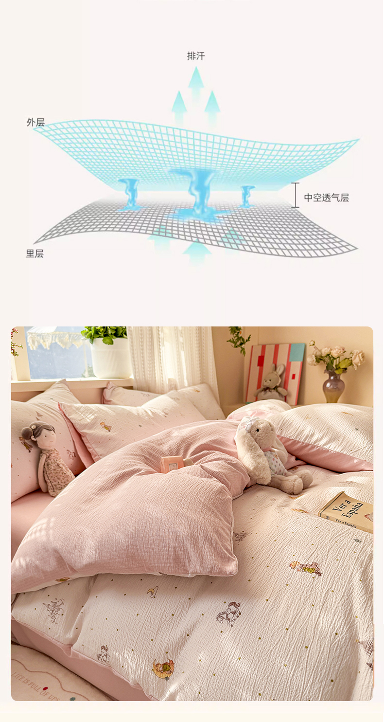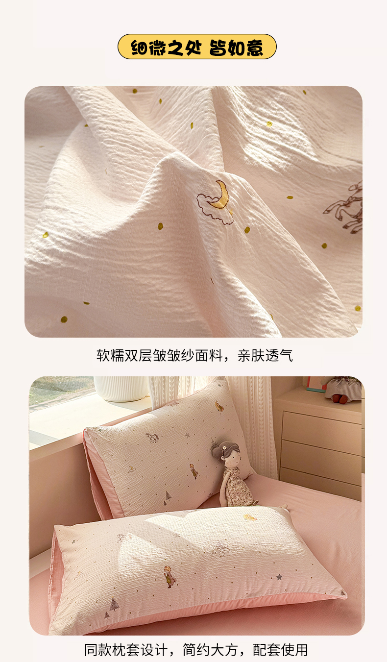 丽美人家纺 2026新款A类皱皱纱双层印花单被套 BT月境骑踪