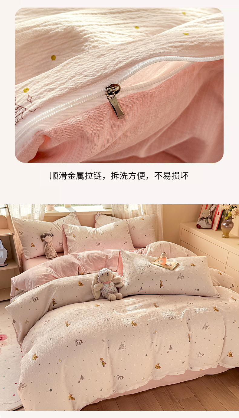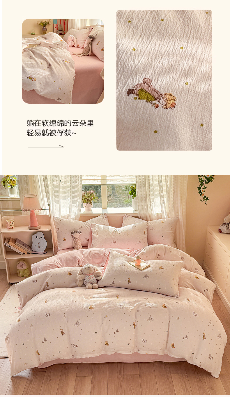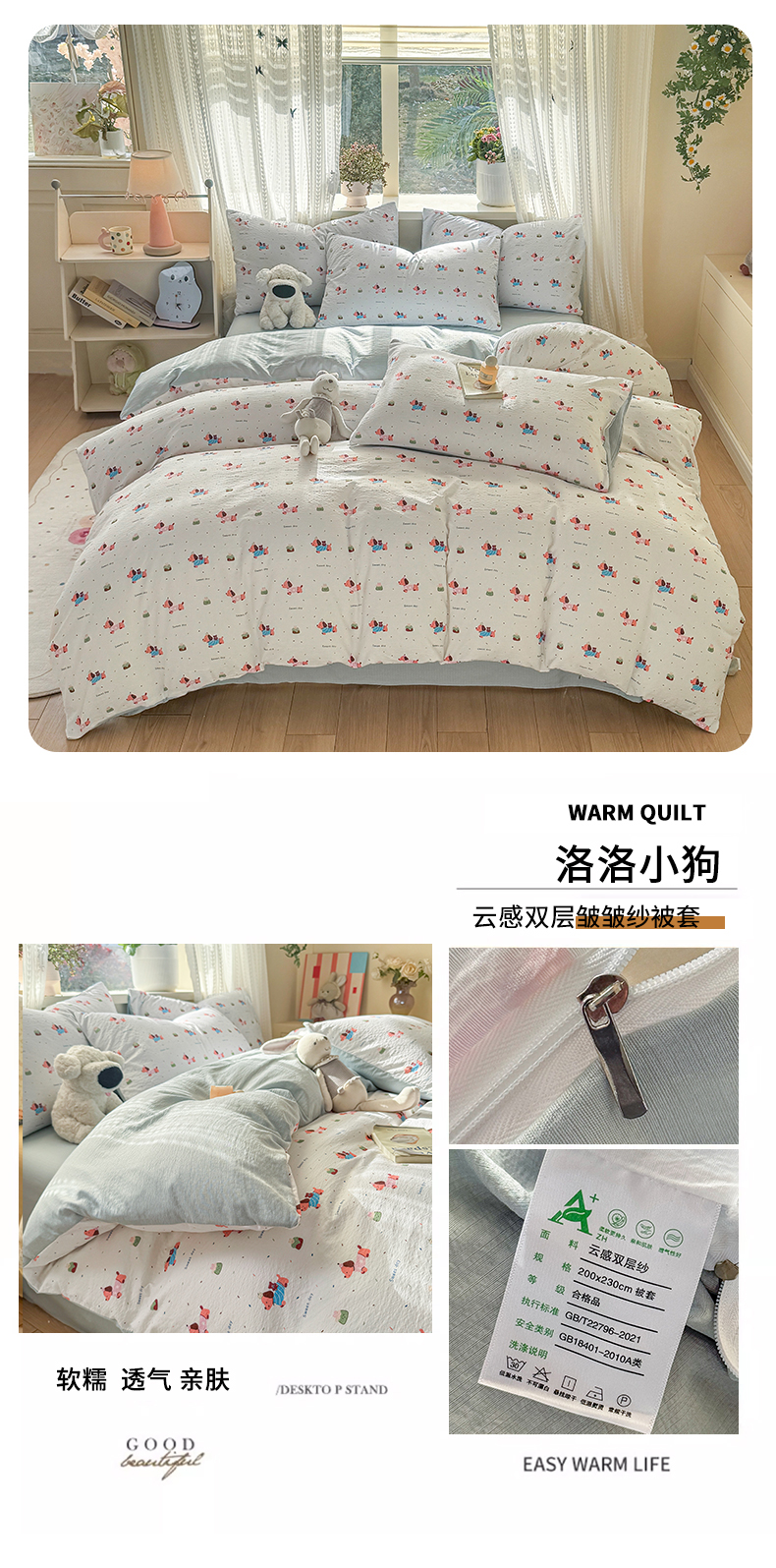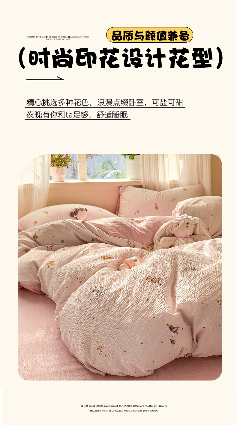 商品名称:丽美人家纺 2026新款A类皱皱纱双层印花单被套 BT月境骑踪