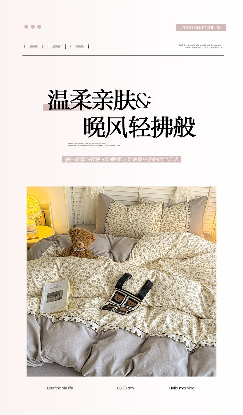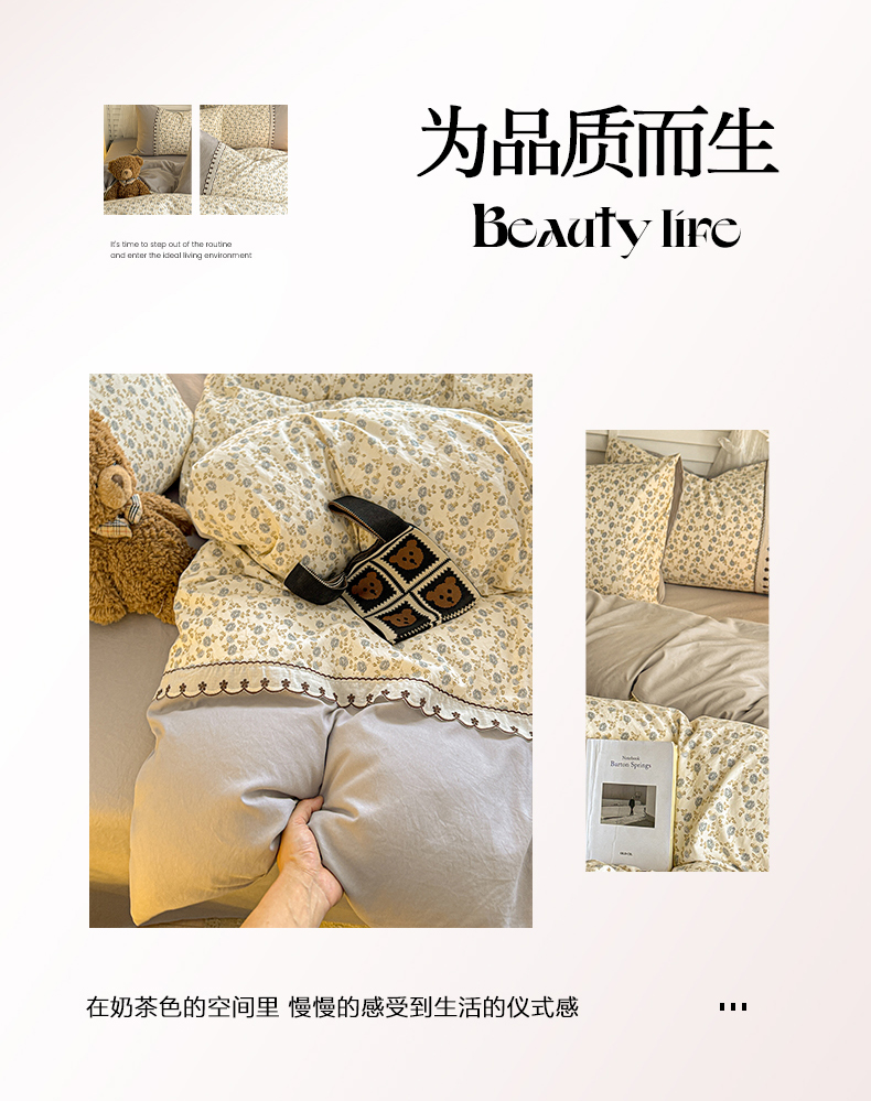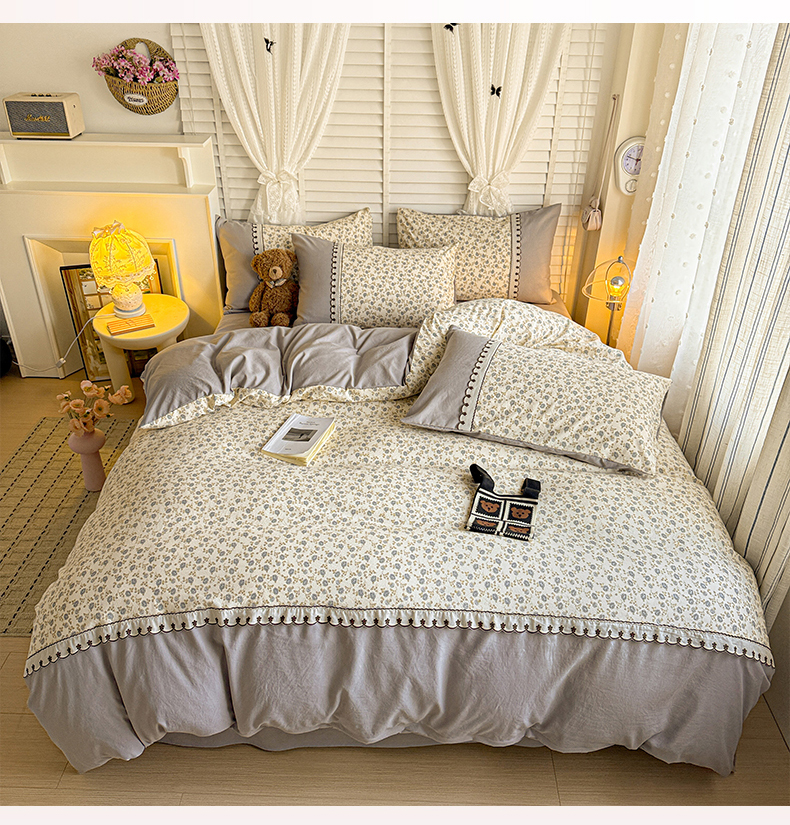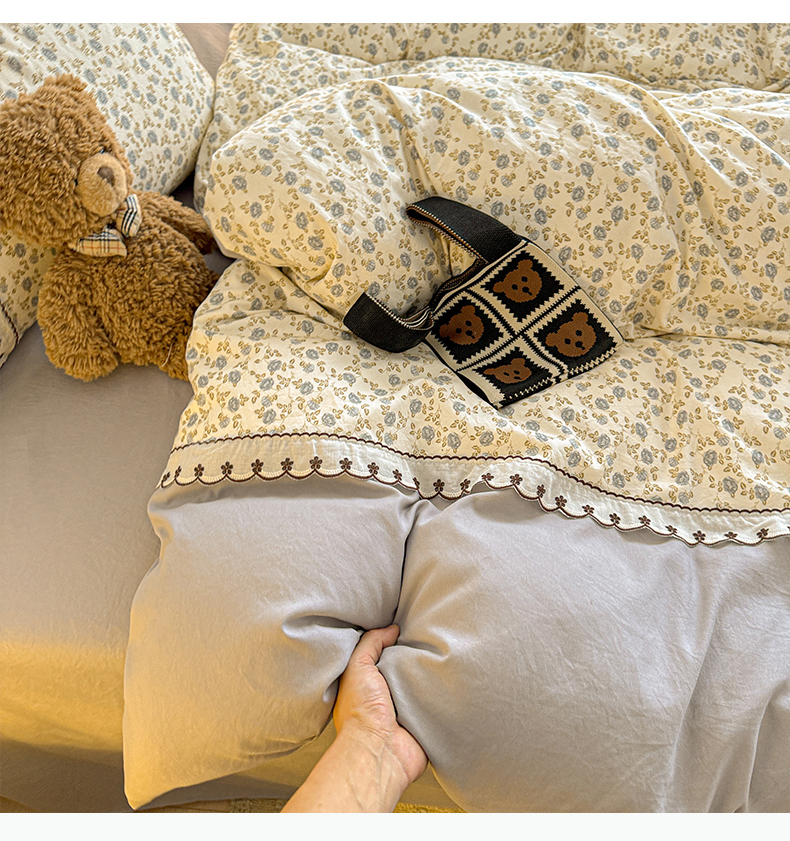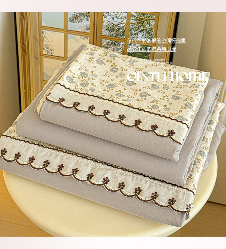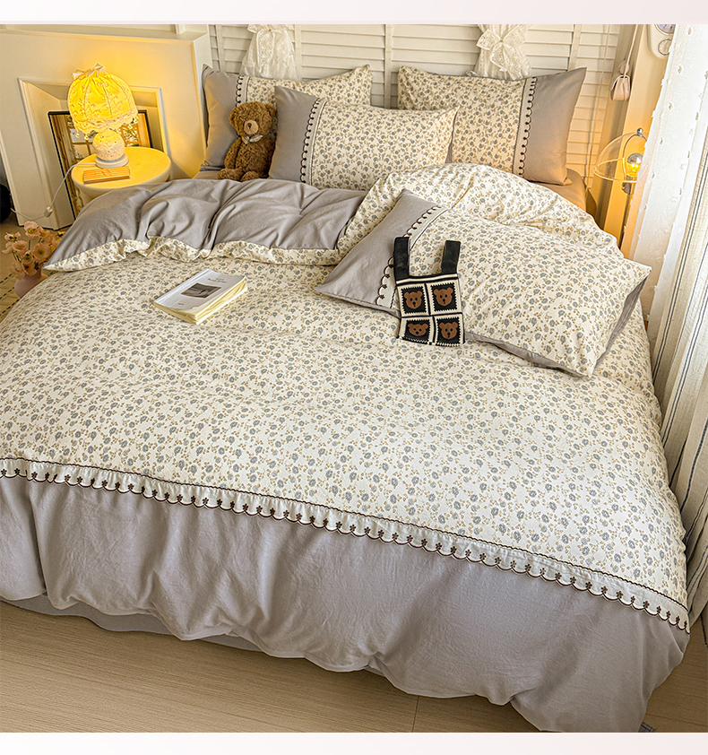 当前位置: 91家纺网 > 商品网购 > 床品套件 > 四件套 > 其它四件套 > 鑫利来家纺 2026新款古法水洗棉法式花边四件套甄选纯棉花边拼接款四件套印花被套床单单品四件 兰溪