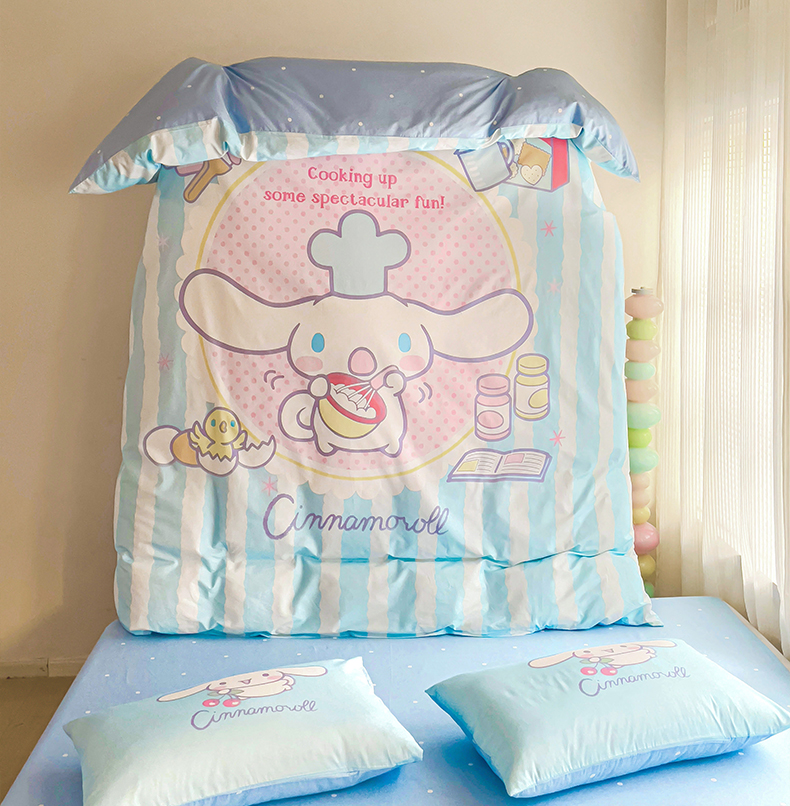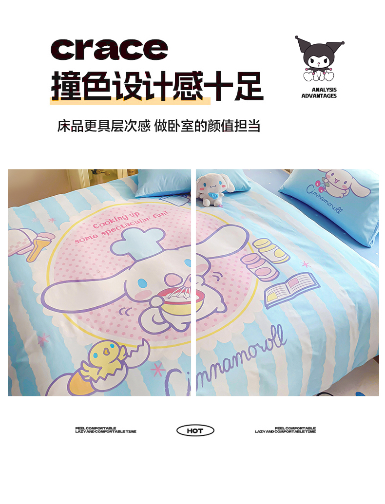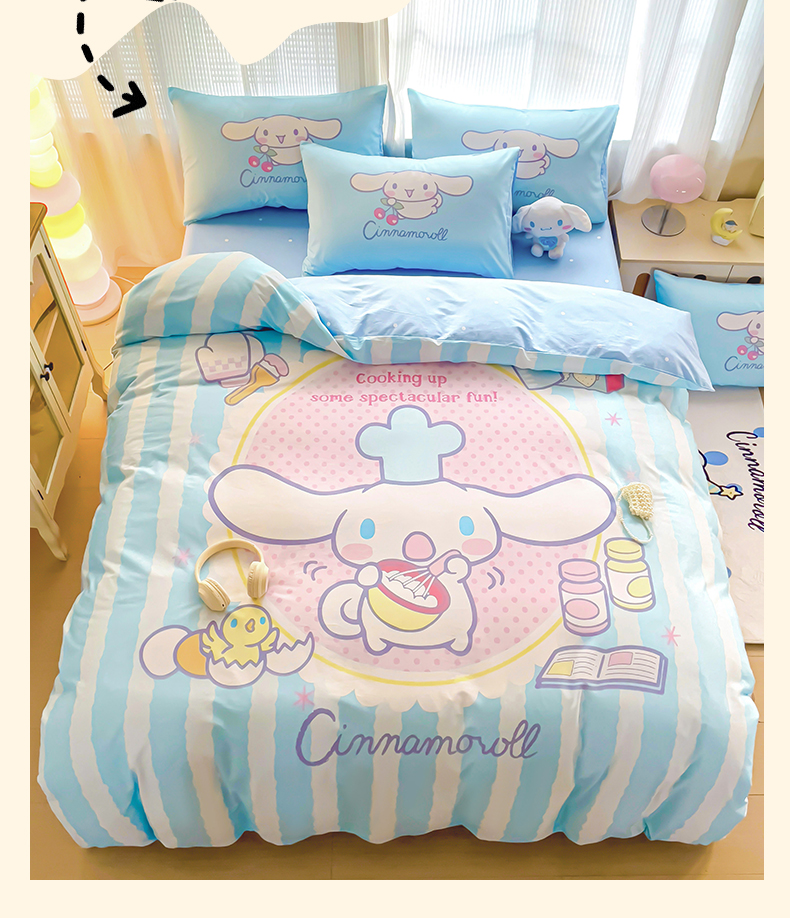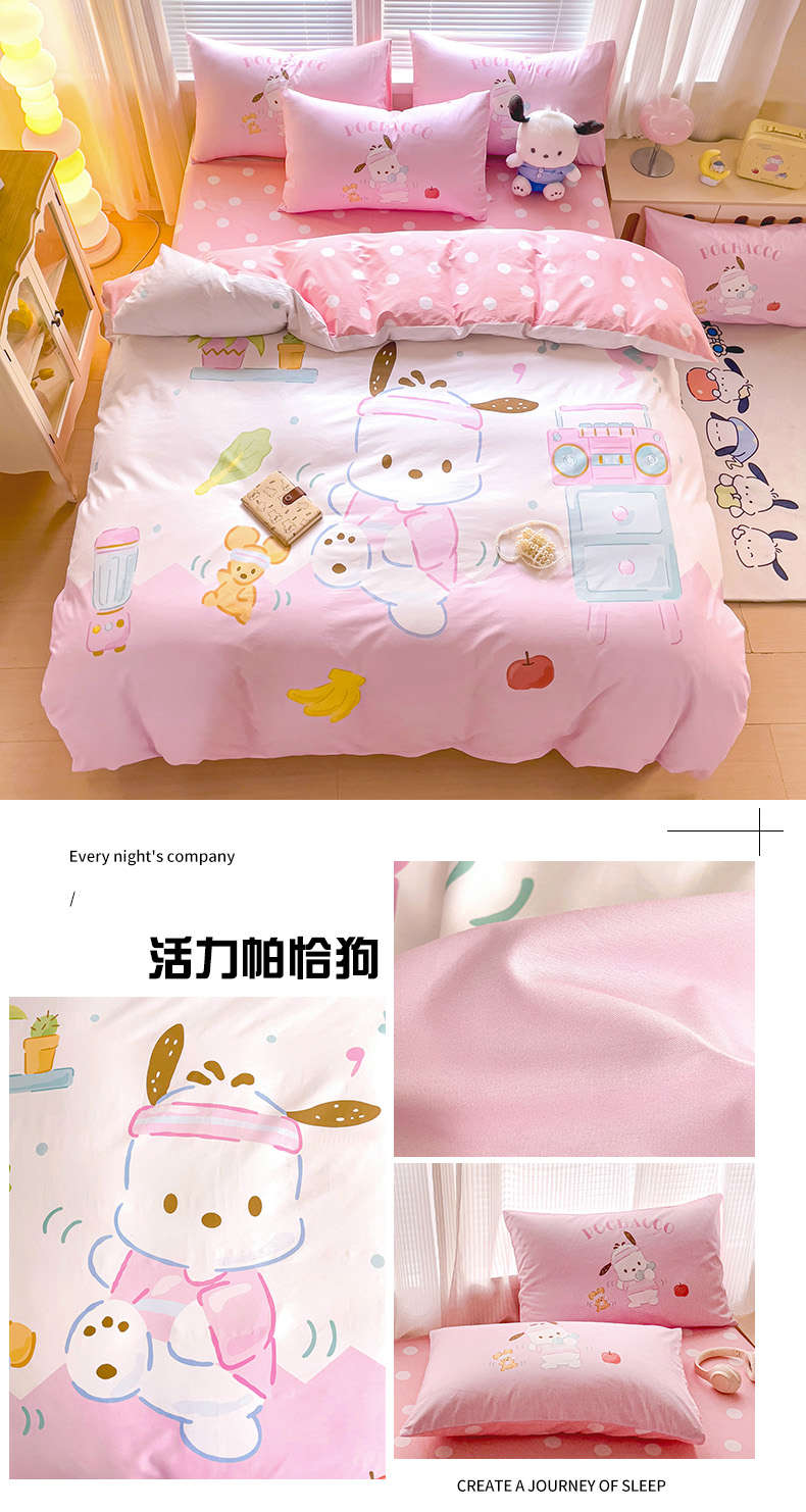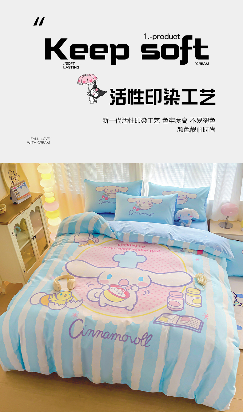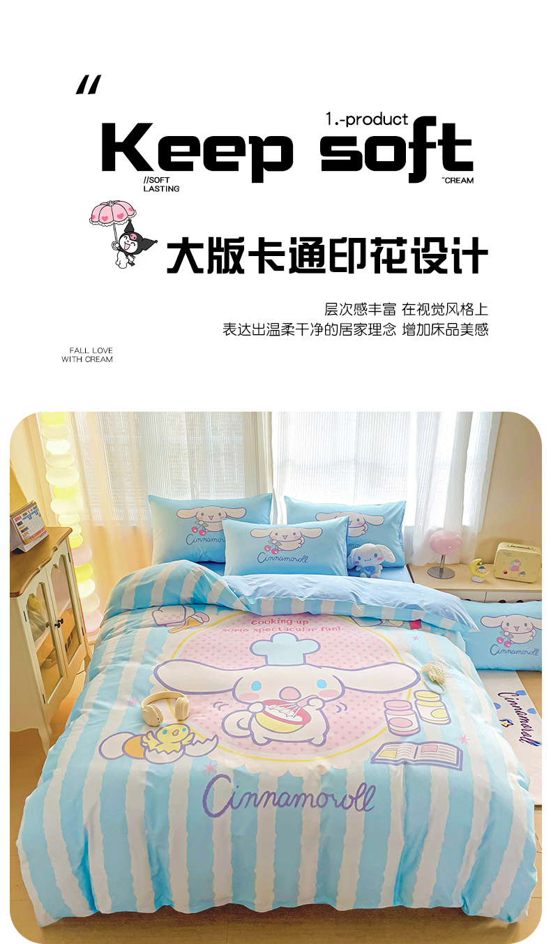 商品名称:朵希曼 2026新款正版授权全棉大版数码印花三丽鸥系列四件套 竖条大耳狗