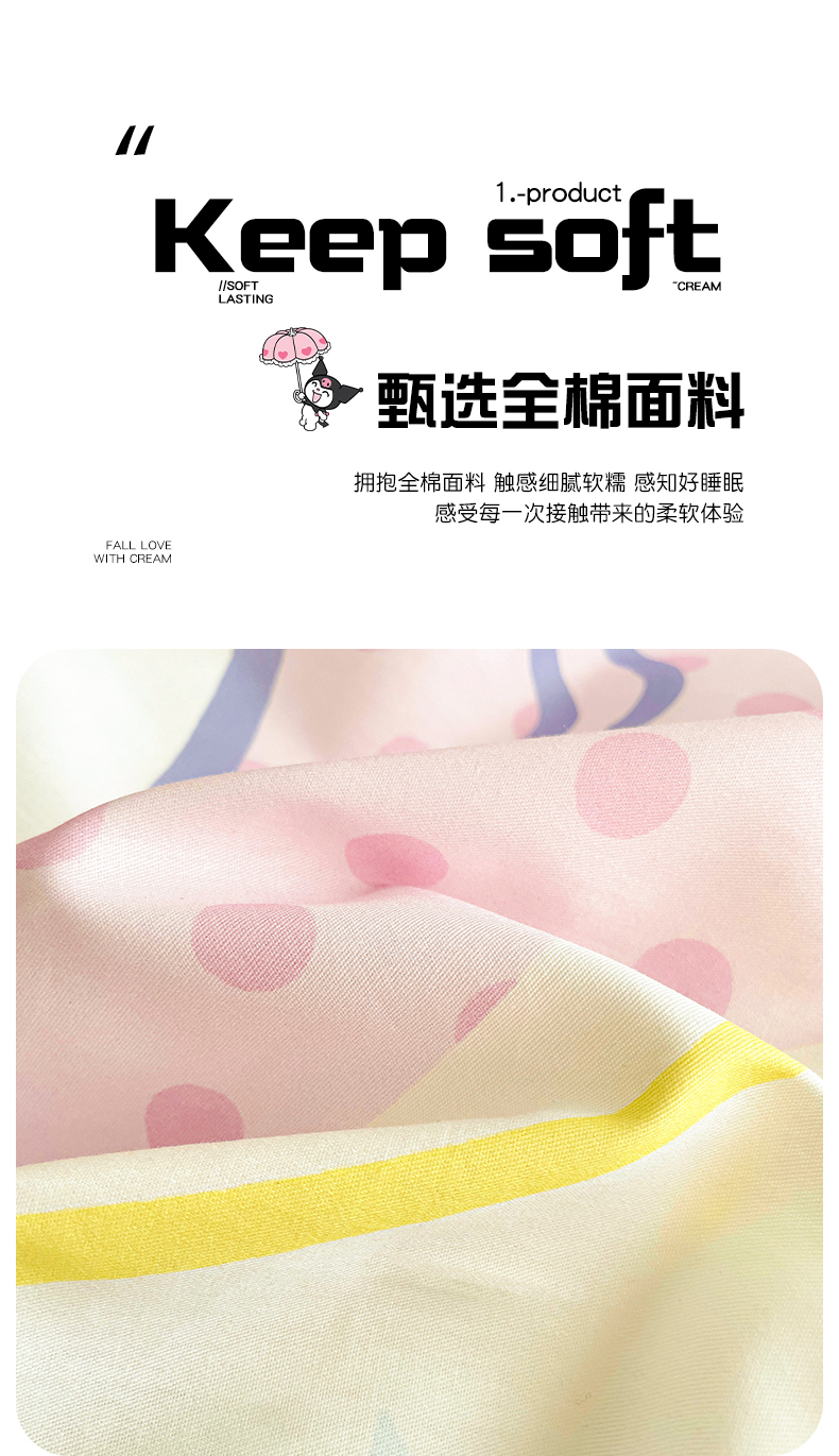 (总)朵希曼 2026新款正版授权全棉纯棉三丽鸥系列,有趣时光,花花美乐蒂,KT,泡泡布丁狗,点点美乐蒂,点点玉桂狗,乖巧KT,红格凯蒂,蝴蝶结KT,蝴蝶结美乐蒂,焦糖布丁狗,蘑菇凯蒂,气球库洛米,甜品玉桂狗,甜甜凯蒂,晚安大耳狗,樱桃凯蒂,元气美乐蒂,运动凯蒂,波点凯蒂,粉格凯蒂,粉格美乐蒂,格子库洛米,公主凯蒂,开心凯蒂,凯蒂乐园,可爱库洛米,美美凯蒂,魔法美乐蒂,气球凯蒂,圈圈美乐蒂,少女凯蒂,糖果凯蒂,甜甜库洛米,甜筒凯蒂,甜心凯蒂,童趣美乐蒂