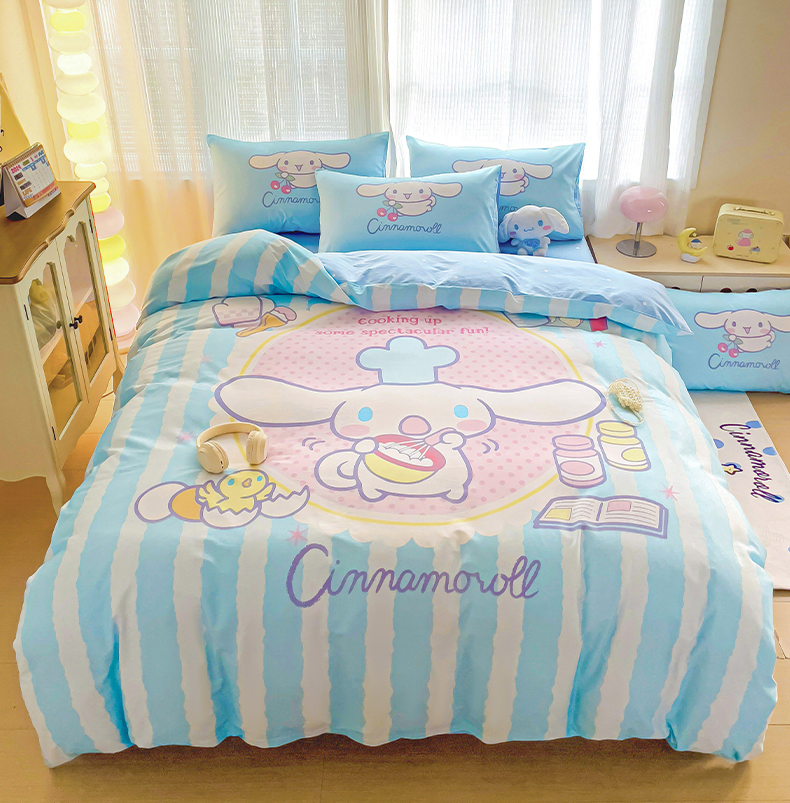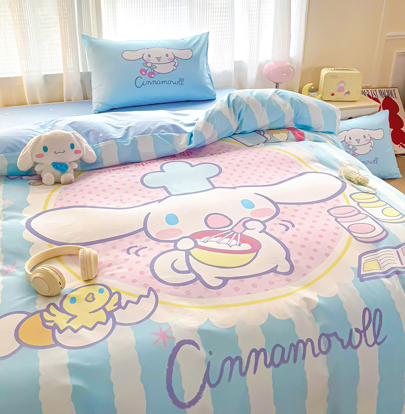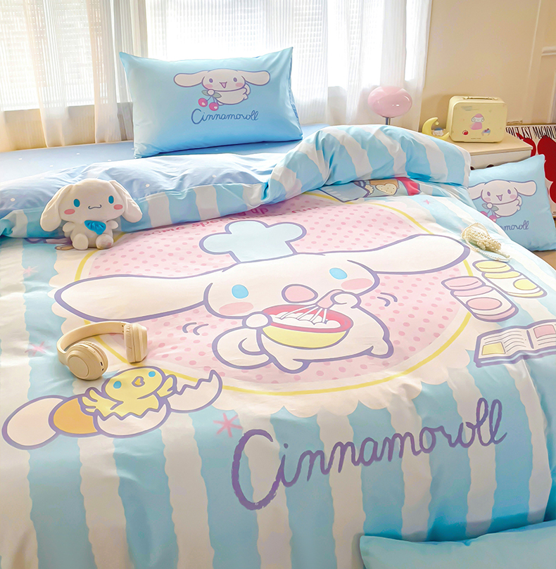 朵希曼 2026新款正版授权全棉大版数码印花三丽鸥系列四件套 竖条大耳狗