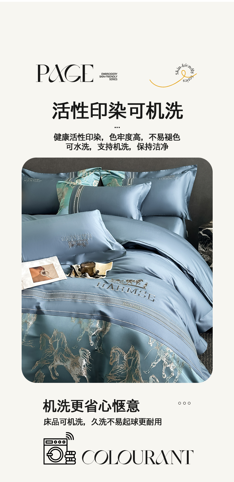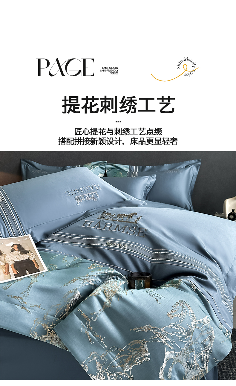 当前位置: 91家纺网 > 商品网购 > 床品套件 > 四件套 > 全棉普通四件套 > 置顶家纺 2026新款马年爱马亲肤提花刺绣系列四件套 爱马-宾利蓝