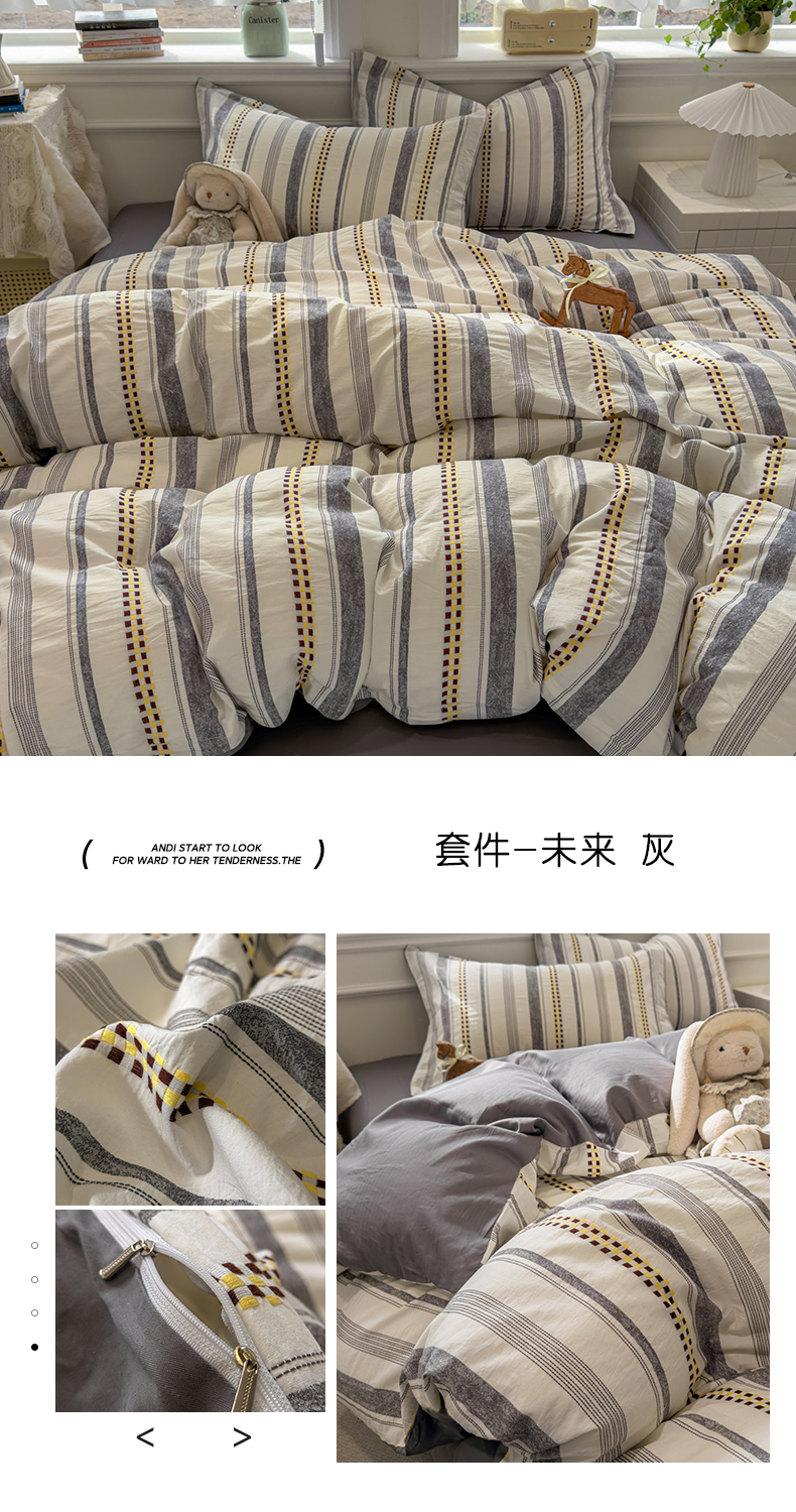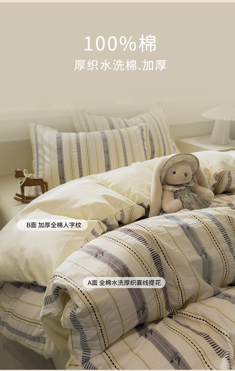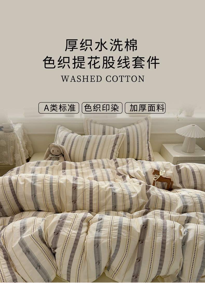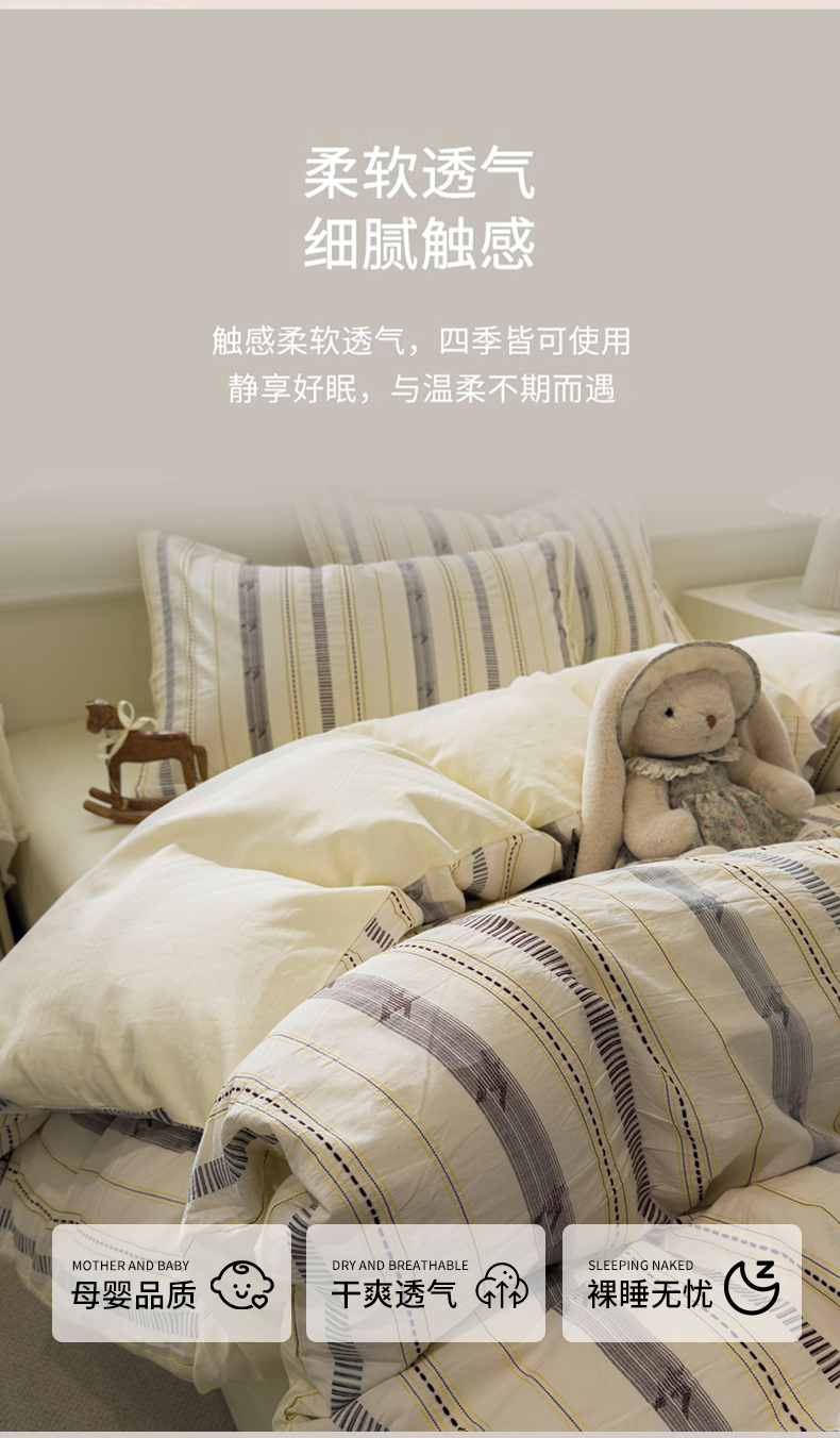 当前位置: 91家纺网 > 商品网购 > 床品套件 > 四件套 > 全棉普通四件套 > 眠博士 2026新款全棉纯棉水洗色织提花股线四件套 套件-素简 米