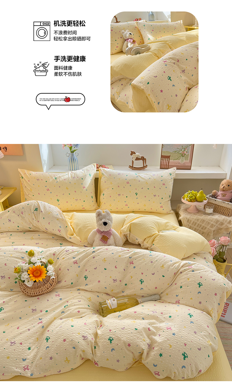 当前位置: 91家纺网 > 商品网购 > 床品套件 > 四件套 > 其它四件套 > 卡迪熊家纺 2026新款软糯泡芙纱印花四件套 梦幻世界