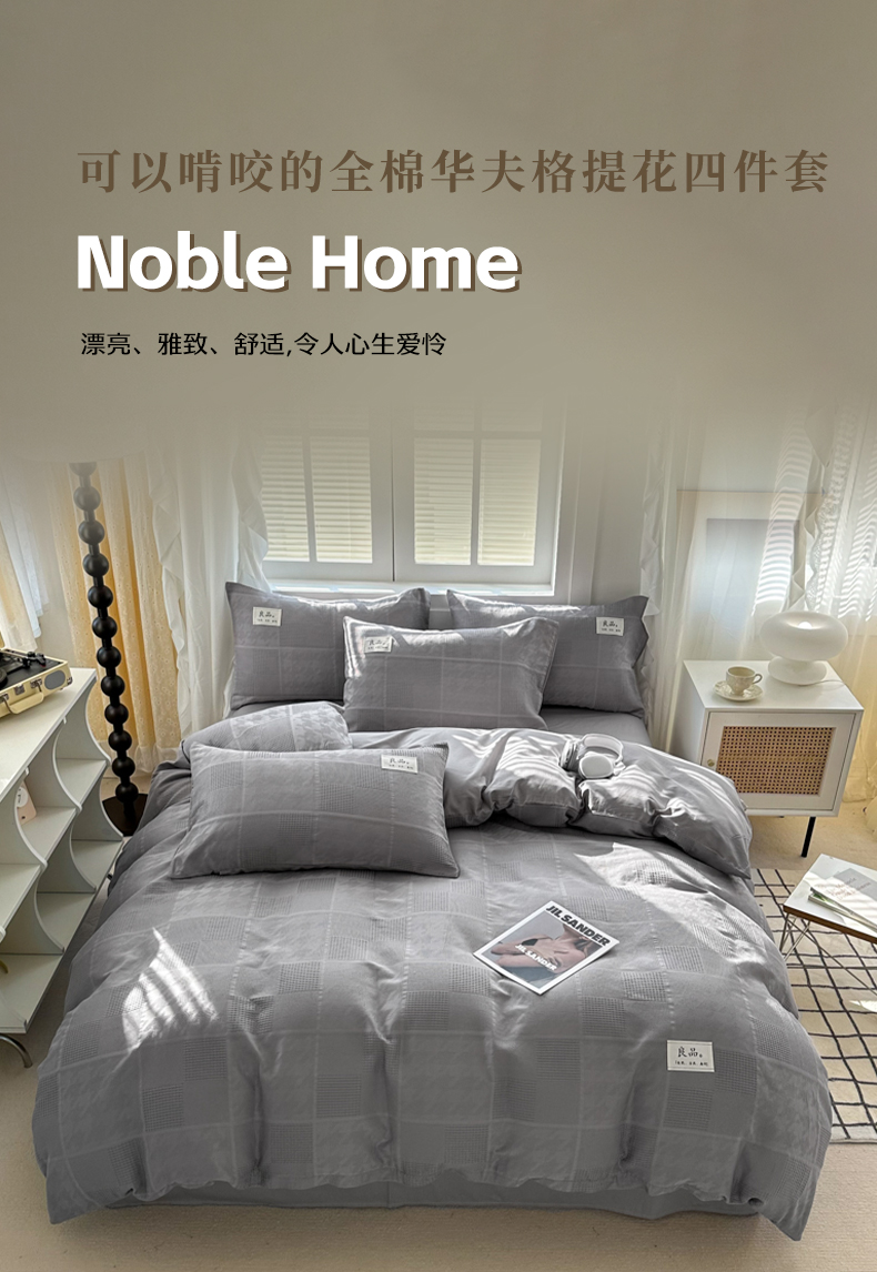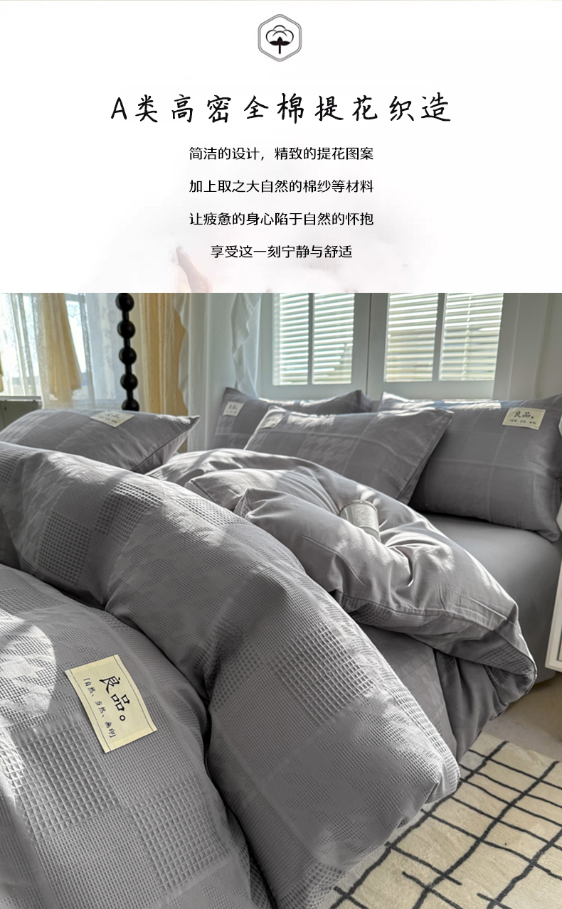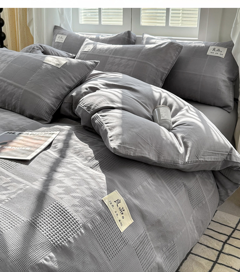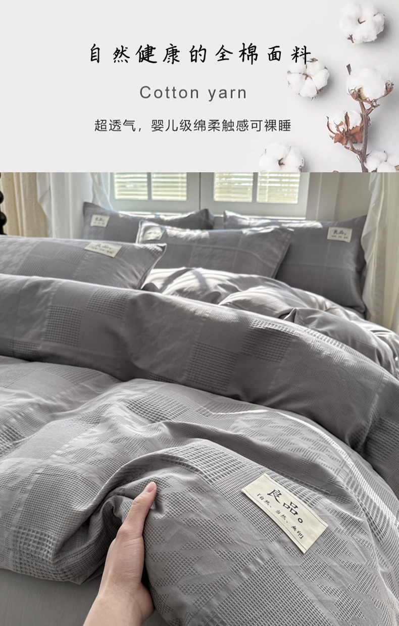 当前位置: 91家纺网 > 商品网购 > 床品套件 > 四件套 > 全棉普通四件套 > 眠博士 2026新款全棉纯棉华夫格麦穗系列四件套 华夫格-方格灰