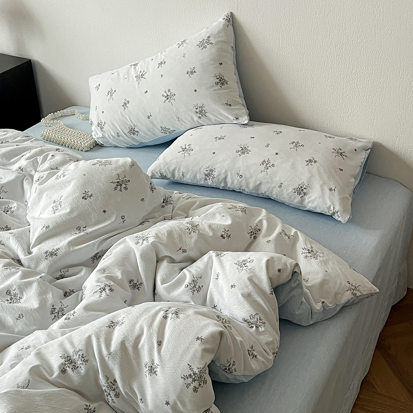 (总)一比一家纺 2026新款A类仿棉古法水洗棉法式全棉花边四件套,青花瓷,花田兔,木马乐园,梦华录,剪秋,梦露,粉雾蔷薇,春野,赛琳娜,森屿,小幸运-蓝,絮语