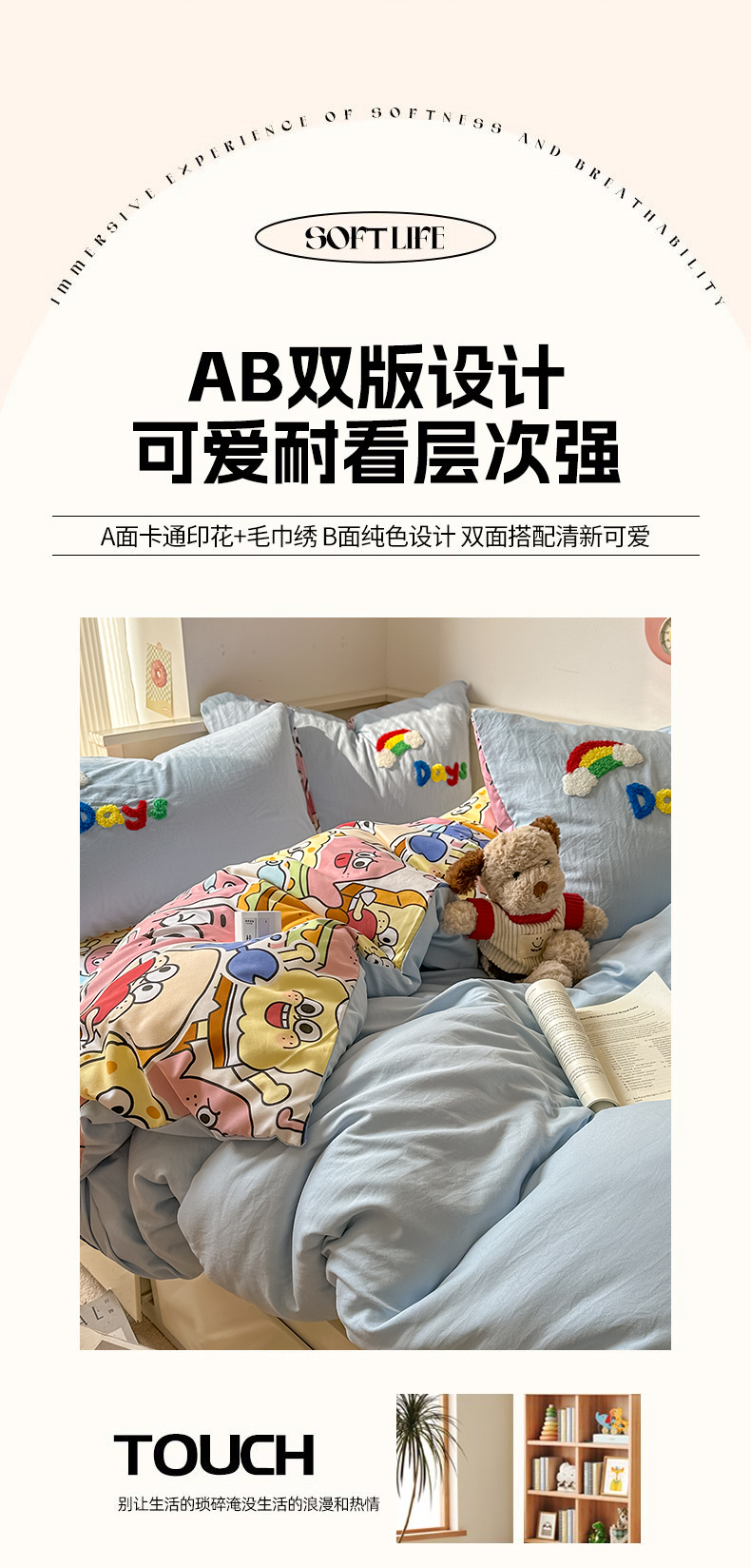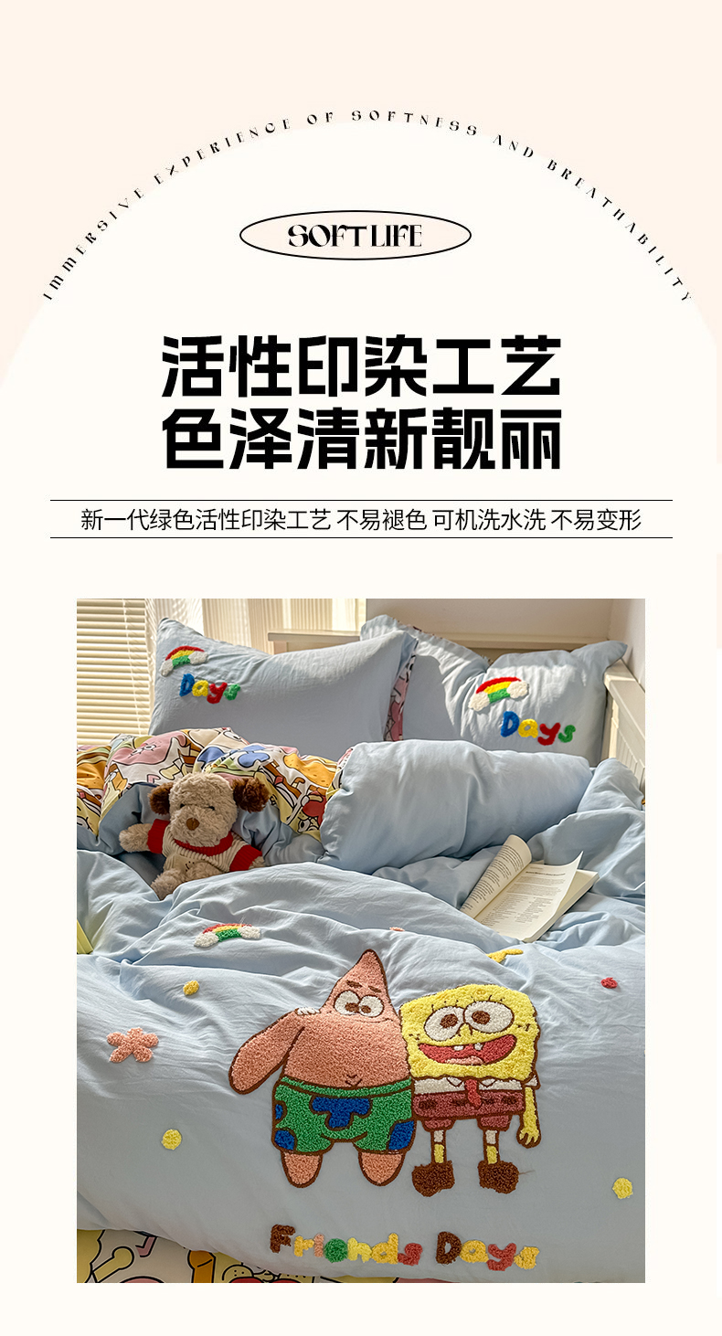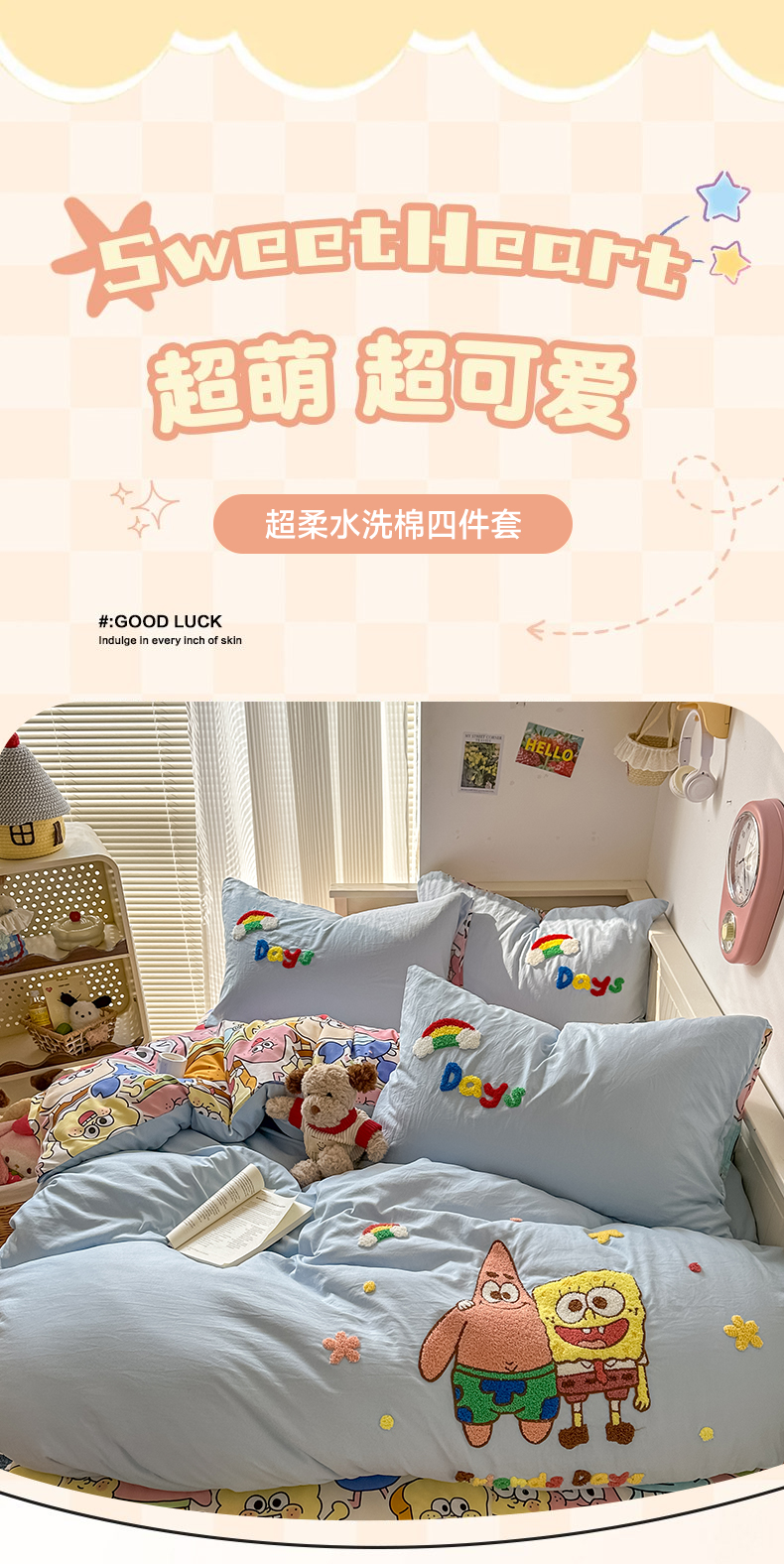 当前位置: 91家纺网 > 商品网购 > 床品套件 > 四件套 > 水洗棉四件套 > 易辰美 2026春夏新款超柔水洗棉四件套 大星与海宝