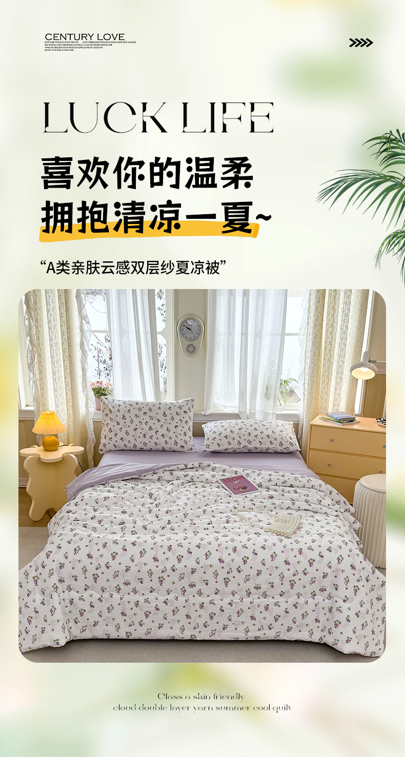 (总)艺菲阁家纺 2025新款花边款小碎花A类云感双层纱夏被,春风十里,海像深林,偏偏宠爱,倾心-米,人间草木,森田野园,相思-粉,相思-蓝
