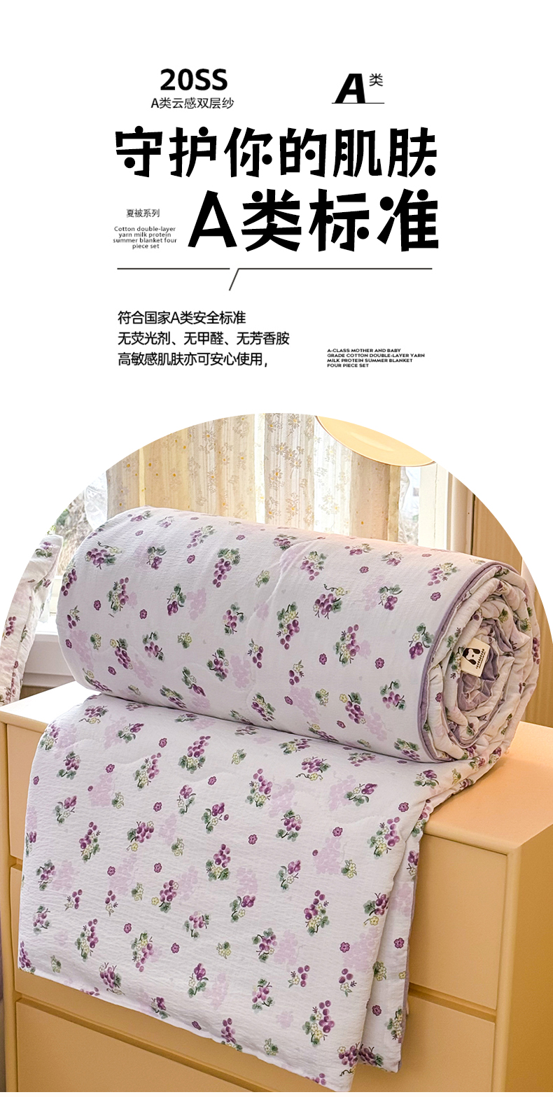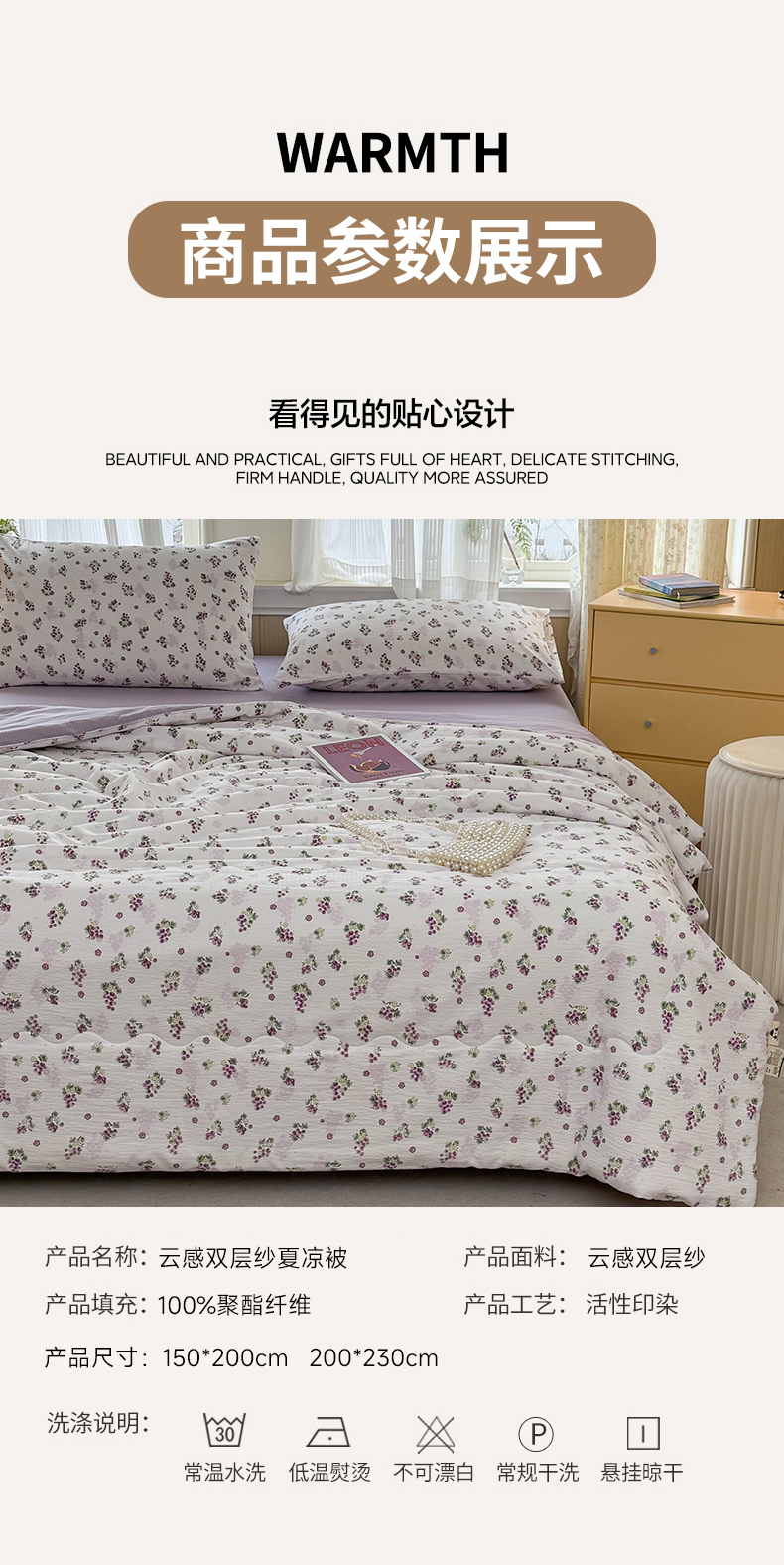 艺菲阁家纺 2026新款云感双层纱夏被夏凉被空调被 葡萄多多