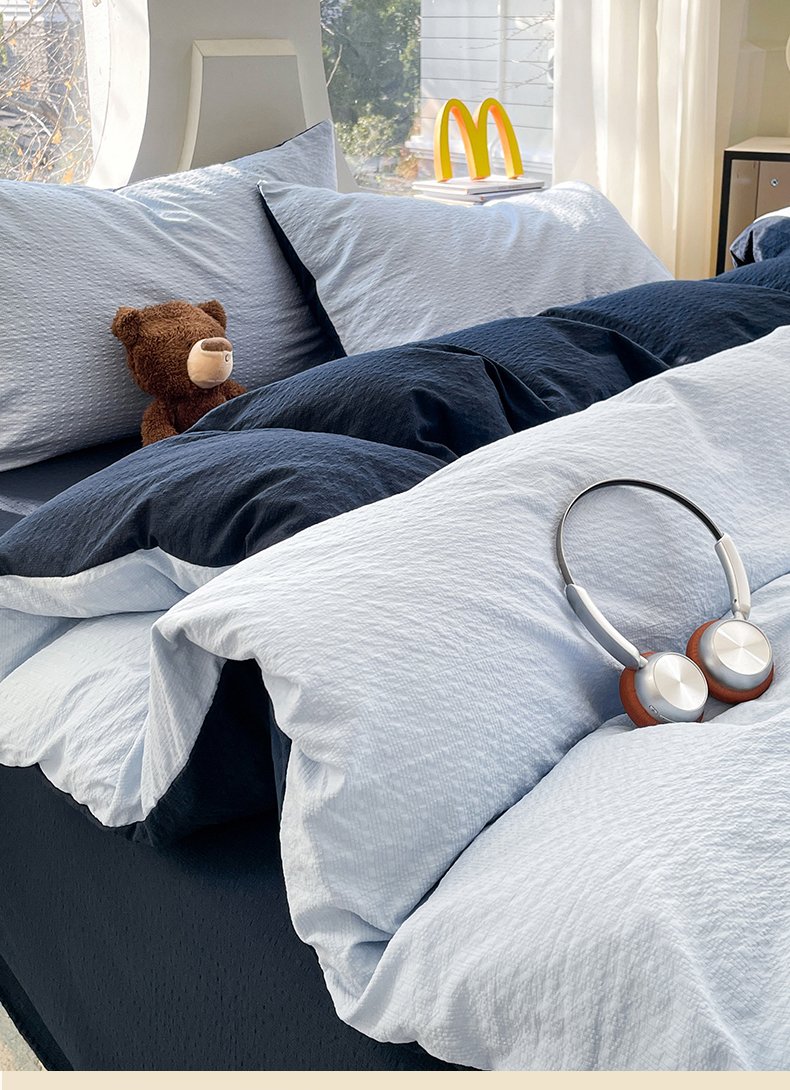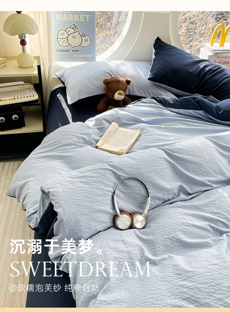 当前位置: 91家纺网 > 商品网购 > 床品套件 > 四件套 > 双层纱四件套 > 优承佳生活馆 2026新款软糯双拼泡芙纱四件套 天空蓝+星空蓝