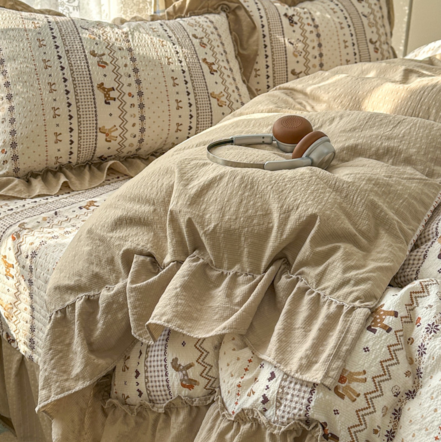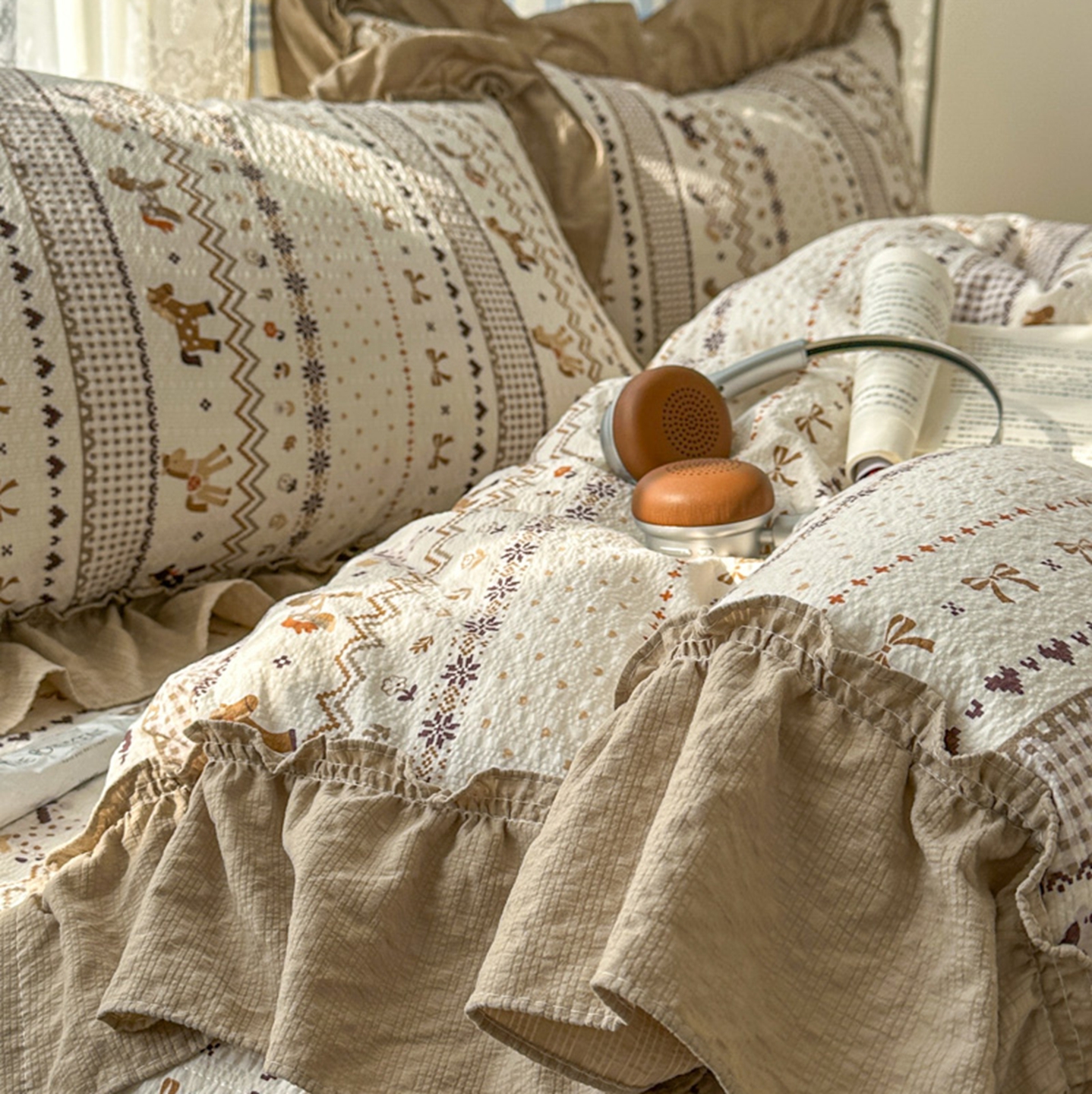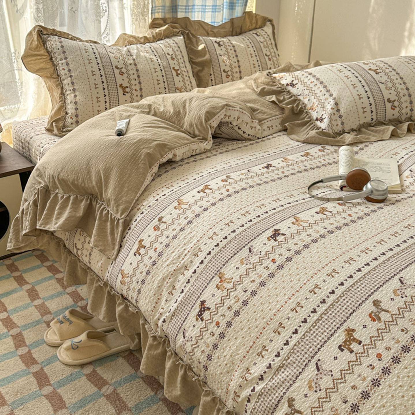 (总)欧尚 2026新款花边床盖四件套,春和,花束,花野,灰樱桃,咖爱心,咖豹纹,咖啡小猫,梨花落,绿爱心,梦境,木马,奶油波点,暖橘枝,暖心,人间草木,田园兔,小女孩,星愿,摇摇马,紫爱心,紫豹纹,紫苏