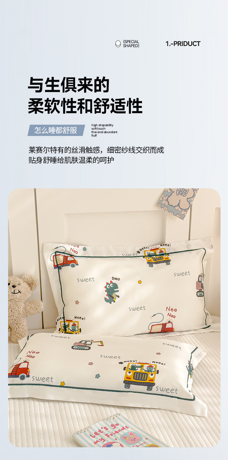 (总)良佐生活 2026新款60支天丝枕套儿童莱赛尔冰丝枕套夏天凉感枕头套,爱心兔兔,海洋伙伴,凯莉,开心马戏团,蝴蝶结小兔,彩虹小鸭,彩虹恐龙,冰雪奇缘,恐龙奇遇记,苹果小熊,企鹅北极熊,汽车小镇,甜心宝贝,寻梦太空,云朵小熊,侏罗纪公园,组合