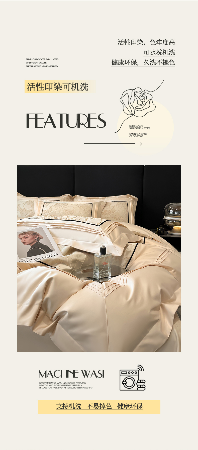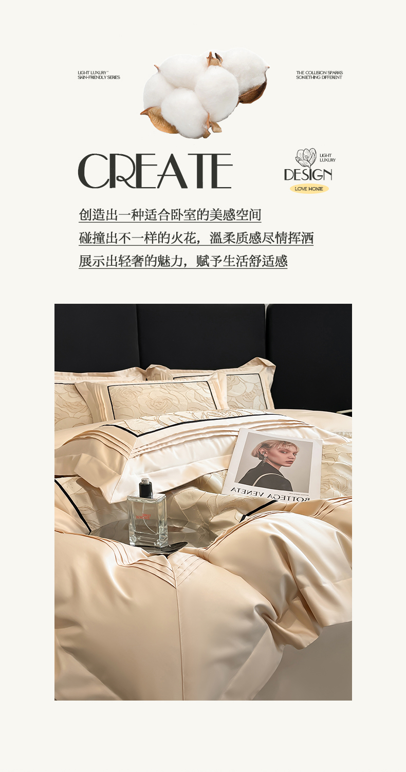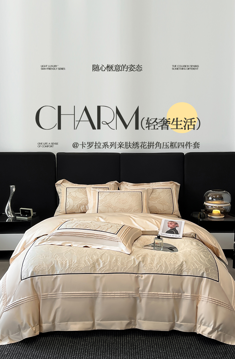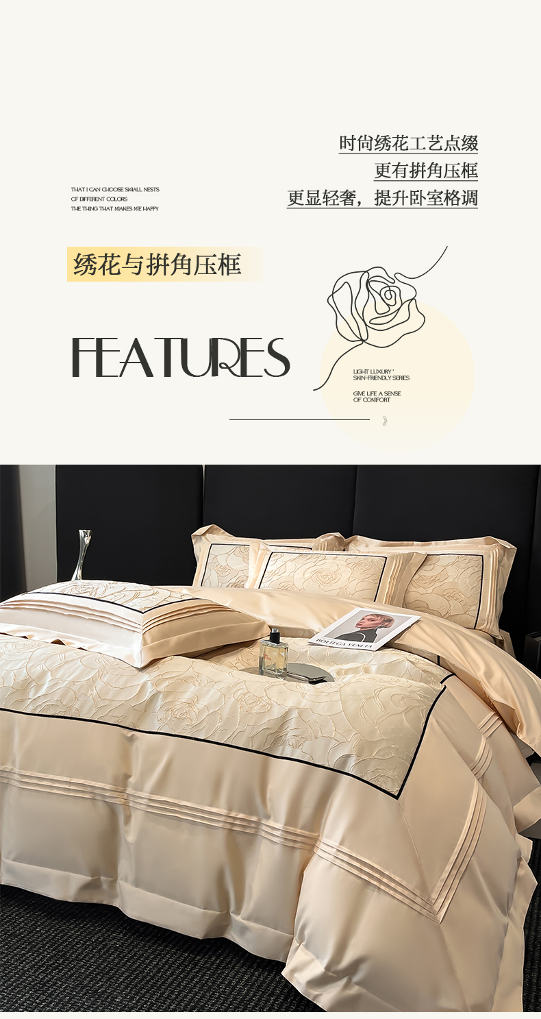 当前位置: 91家纺网 > 商品网购 > 床品套件 > 四件套 > 其它四件套 > 置顶家纺 2026新款亲肤棉玫瑰刺绣提花卡罗拉系列四件套 卡罗拉-浅香槟