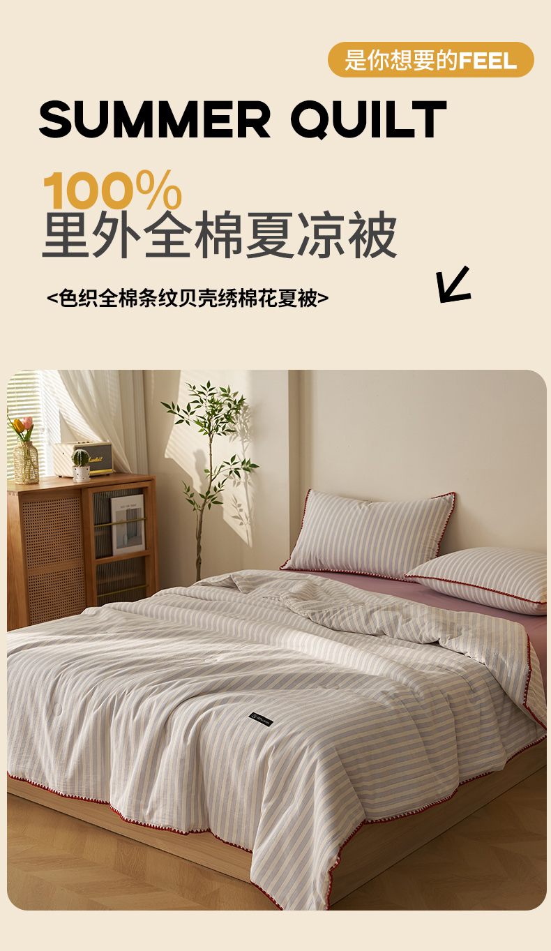 商品名称:暖阳 2026新款无印风色织全棉贝壳绣棉花夏被夏凉被空调被 贝壳海盐紫