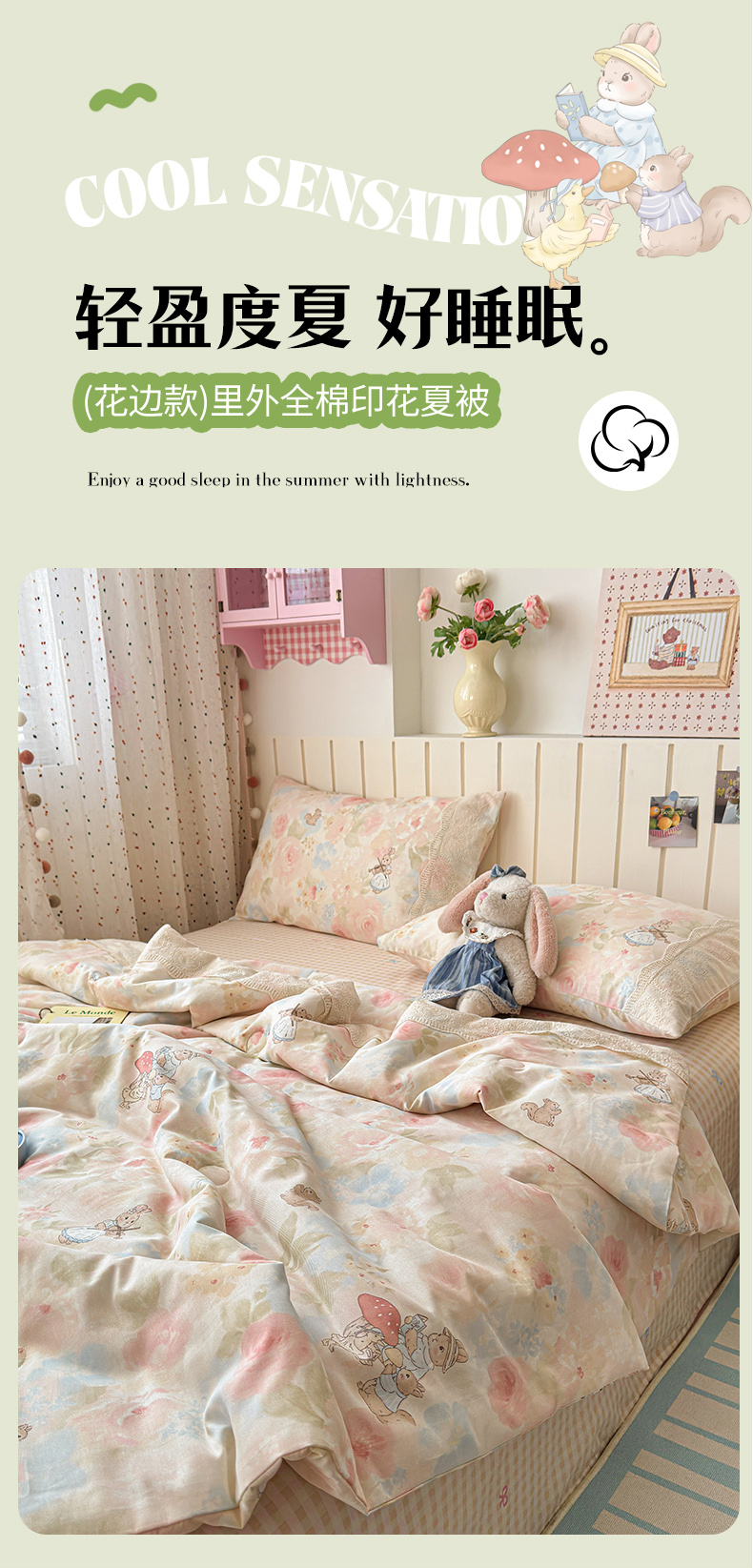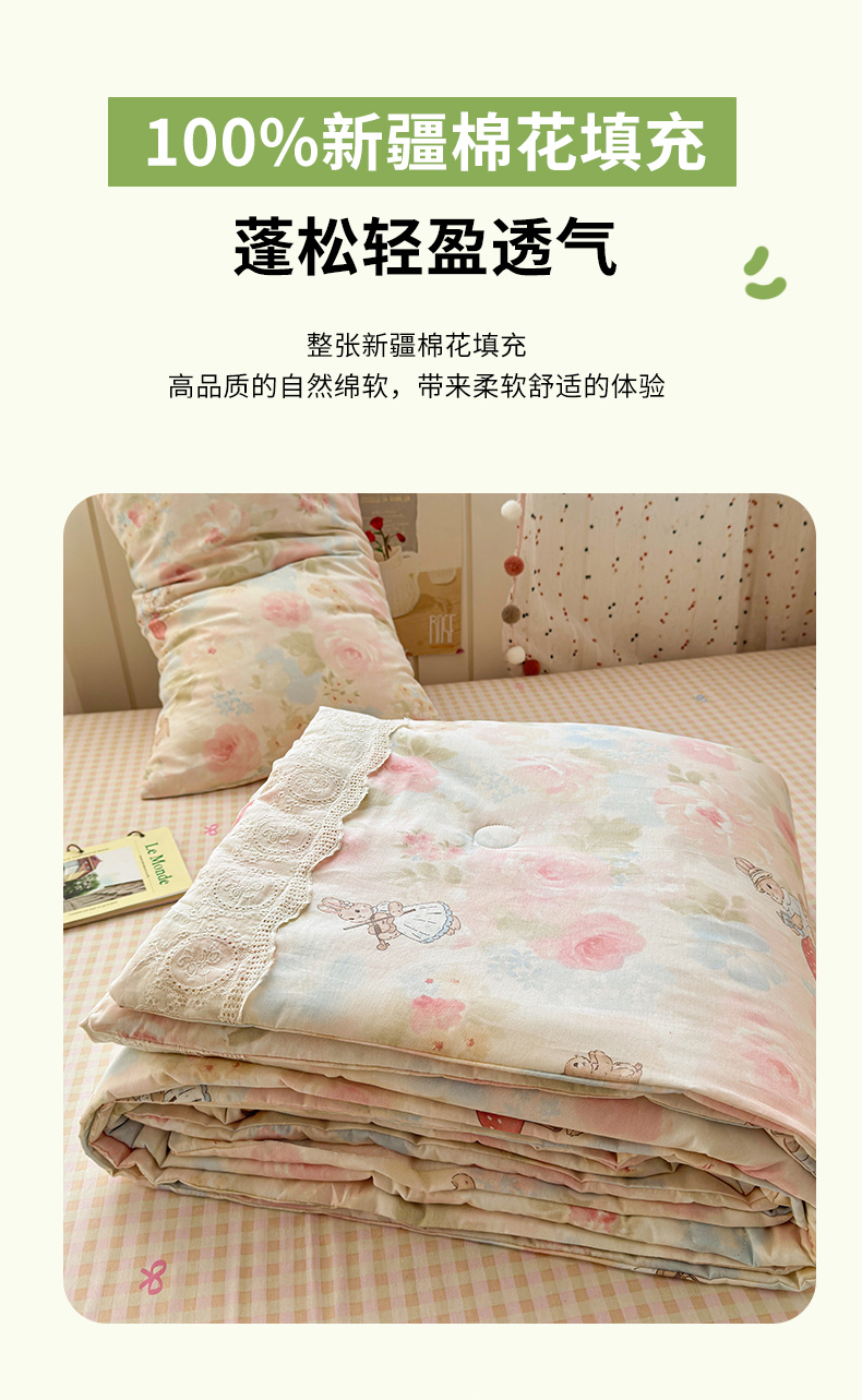 商品名称:暖阳 2026新款全棉花边款棉花夏被夏凉被空调被 花边小兔