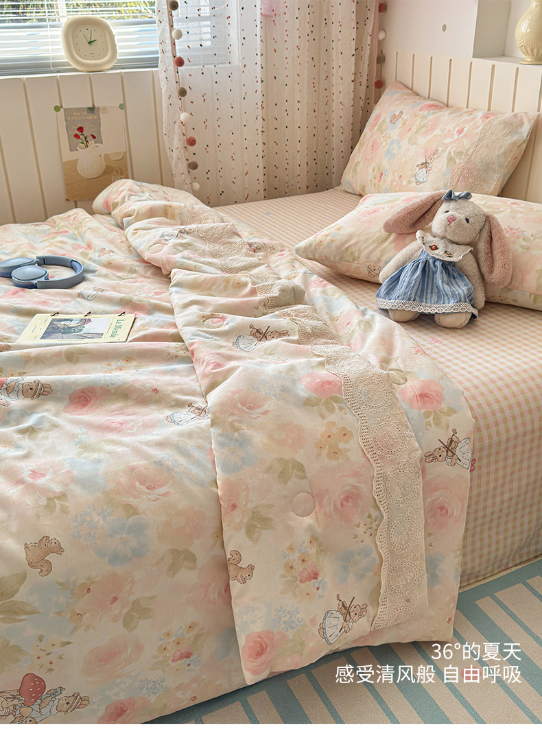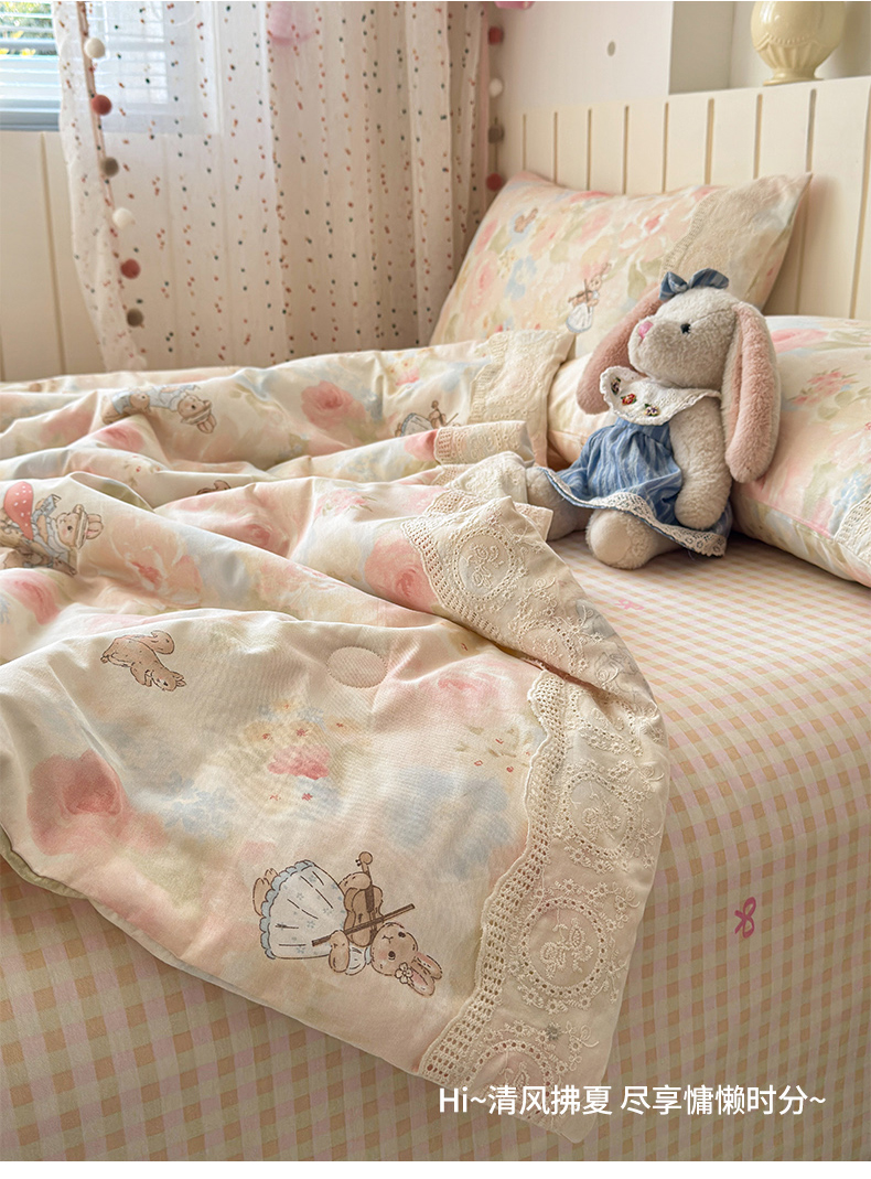 暖阳 2026新款全棉花边款棉花夏被夏凉被空调被 花边小兔