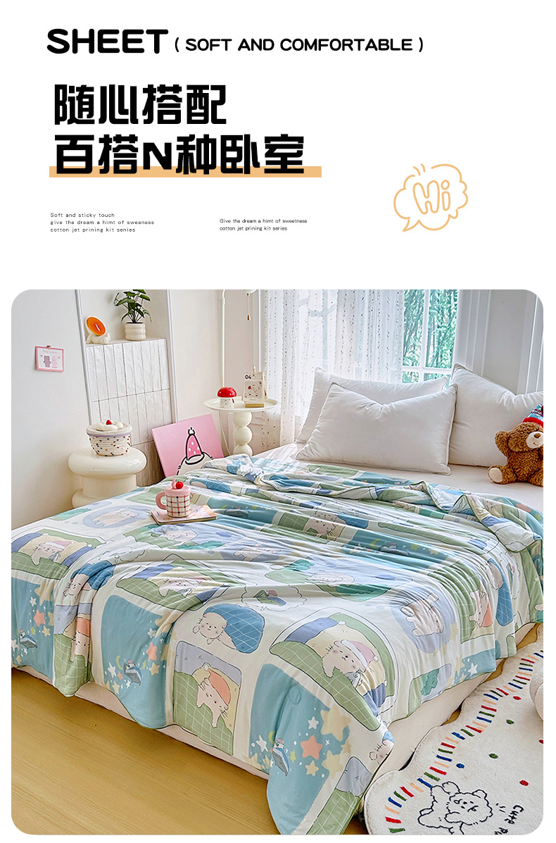 • 91家纺网 家纺一手货源 找家纺 (总)丫丫家纺 2026新款A类豆豆被有氨凉感丝冰豆豆夏被卡通印花双面凉感丝(含氨纶)夏凉被空调被子,奶芙萌宠绿‌,百福格子喵,豆豆凯蒂粉,蝴蝶结,奶绿星星,企鹅王子,碎花裙,小可爱紫,小恐龙,组合图