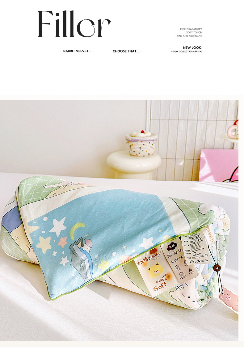 • 91家纺网 家纺一手货源 找家纺 (总)丫丫家纺 2026直播热款A类针织棉豆豆被夏被春秋被空调被儿童学生大版卡通被子被芯,幸运星星,大头贴,粉熊和小鳄,鸿运当头,花仙子,可爱小熊,马内多多粉,兔兔与狗,旺旺人生,小虎鲸,小兔乖乖,要嘛有马,叠拍组合图