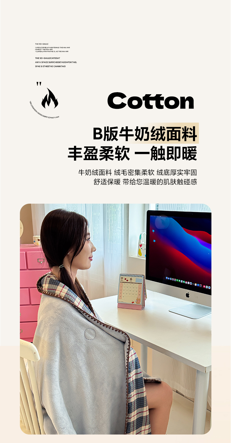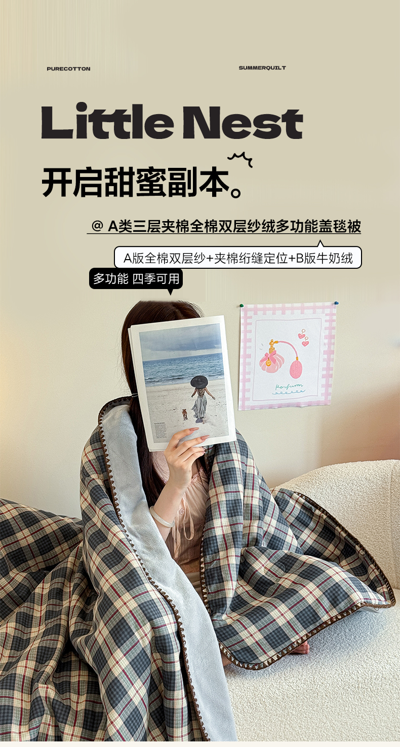 妮可 2026新款A类三层夹棉全棉双层纱绒多功能盖毯被 格子画