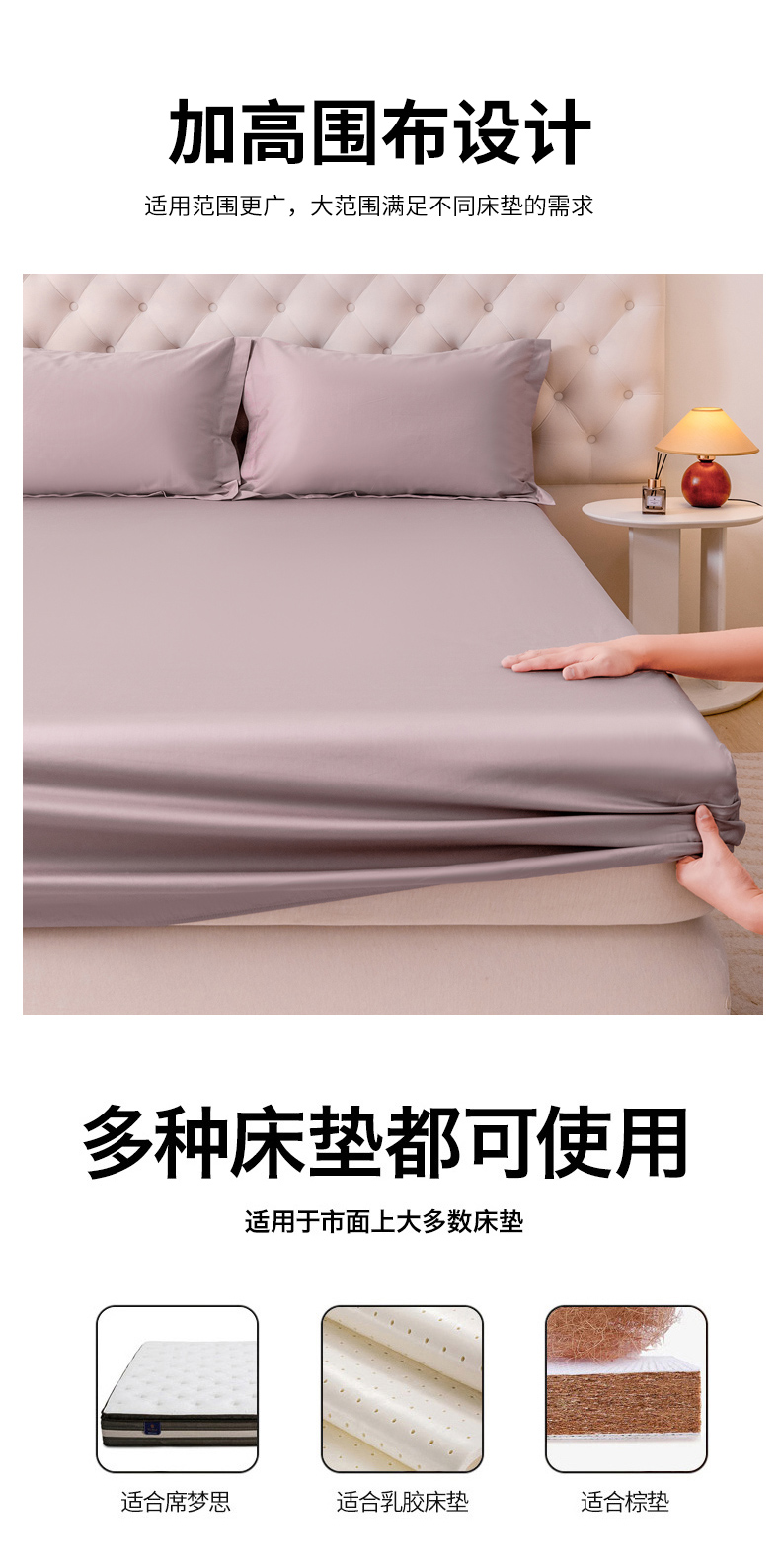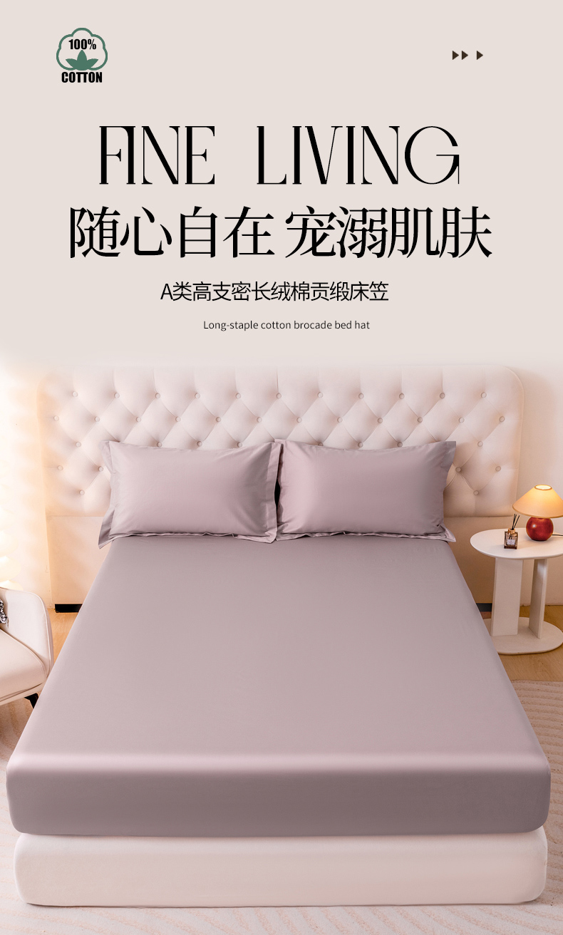 商品名称:宝时兰 2026新款全棉100S长绒棉床笠单件纯色纯棉贡缎 烟紫