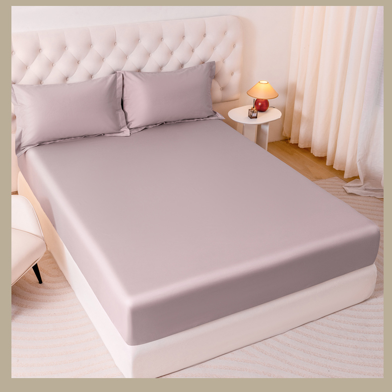 宝时兰 2026新款全棉100S长绒棉床笠单件纯色纯棉贡缎 烟紫