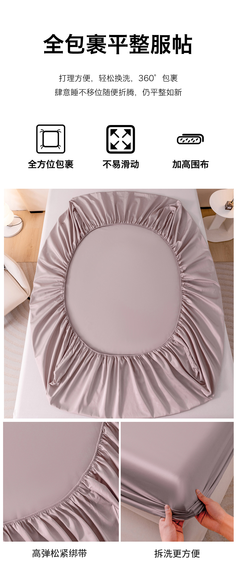(总)宝时兰 2026新款全棉100S长绒棉床笠单件纯色纯棉贡缎,黛蓝,米白,蜜金,藕粉,浅灰,深灰,水绿,烟紫,叠拍