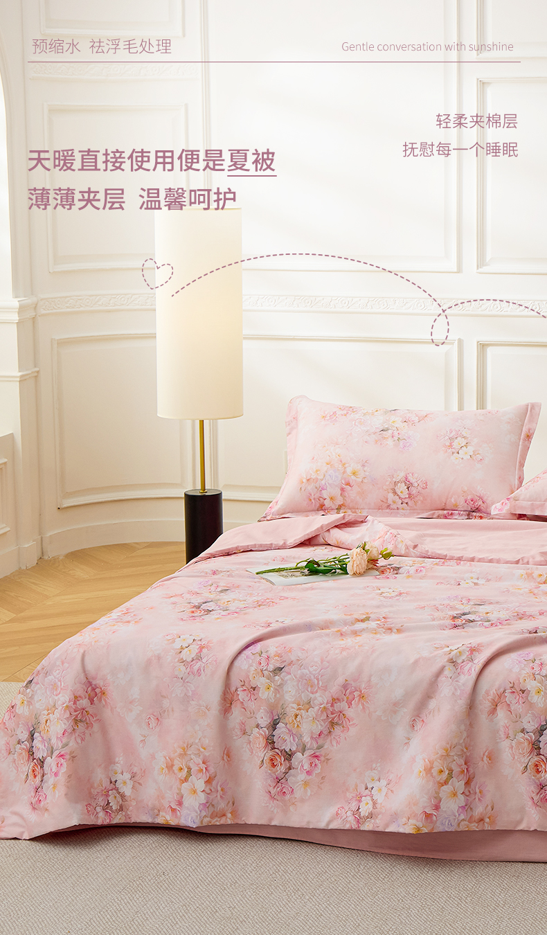 元元家居(元元被业) 2026新款全棉纯棉13372印花两用夏被夏凉被空调被四件套 芳菲