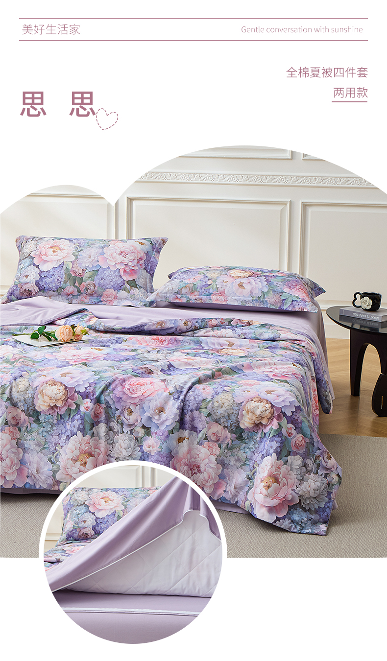 • 91家纺网 家纺一手货源 找家纺 元元家居(元元被业) 2026新款全棉纯棉13372印花两用夏被夏凉被空调被四件套 芳菲