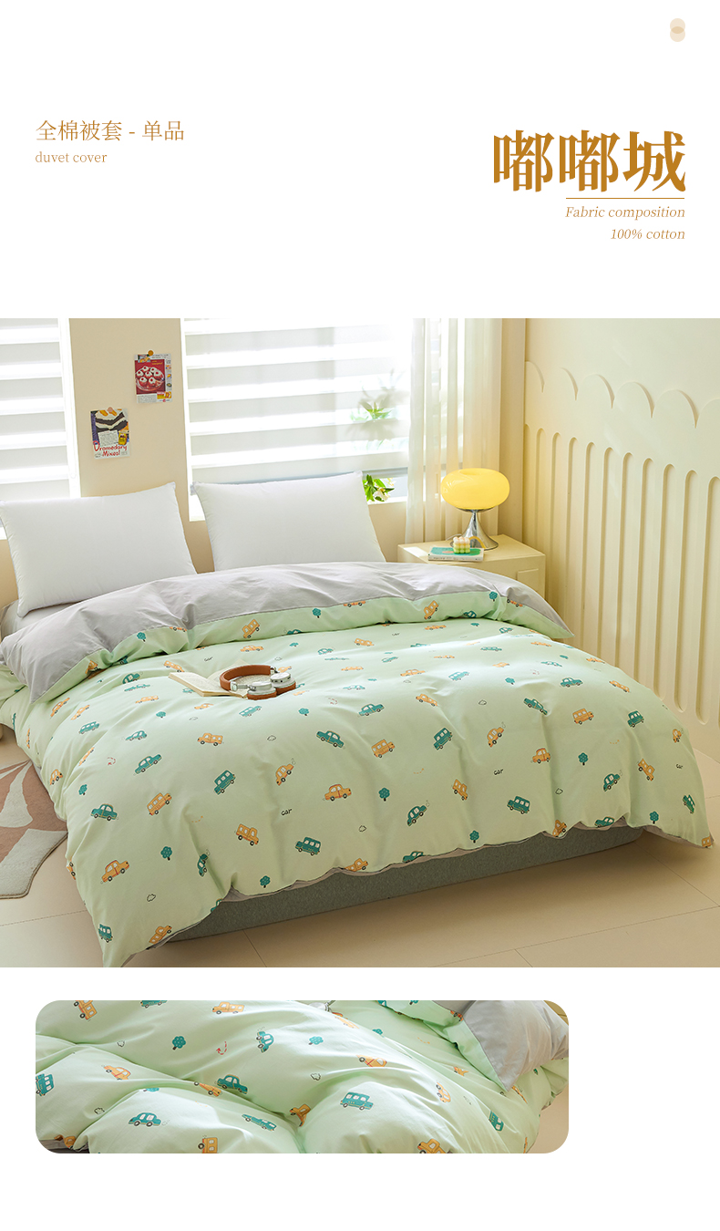 元元家居(元元被业) 2026新款全棉13372套件及单品【印花款】-单被套 花漾绿