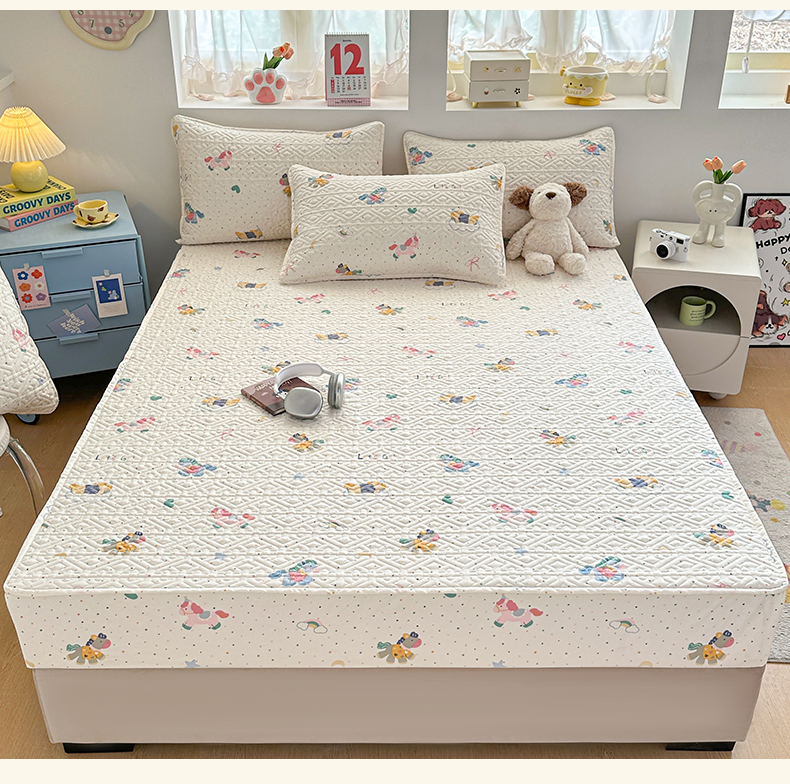 (总)忘忧草 2025新款A类针织棉夹棉防水床笠隔尿垫床罩,淡雅白,豆沙红,翡翠绿,丽人粉,浅米黄,绅士灰