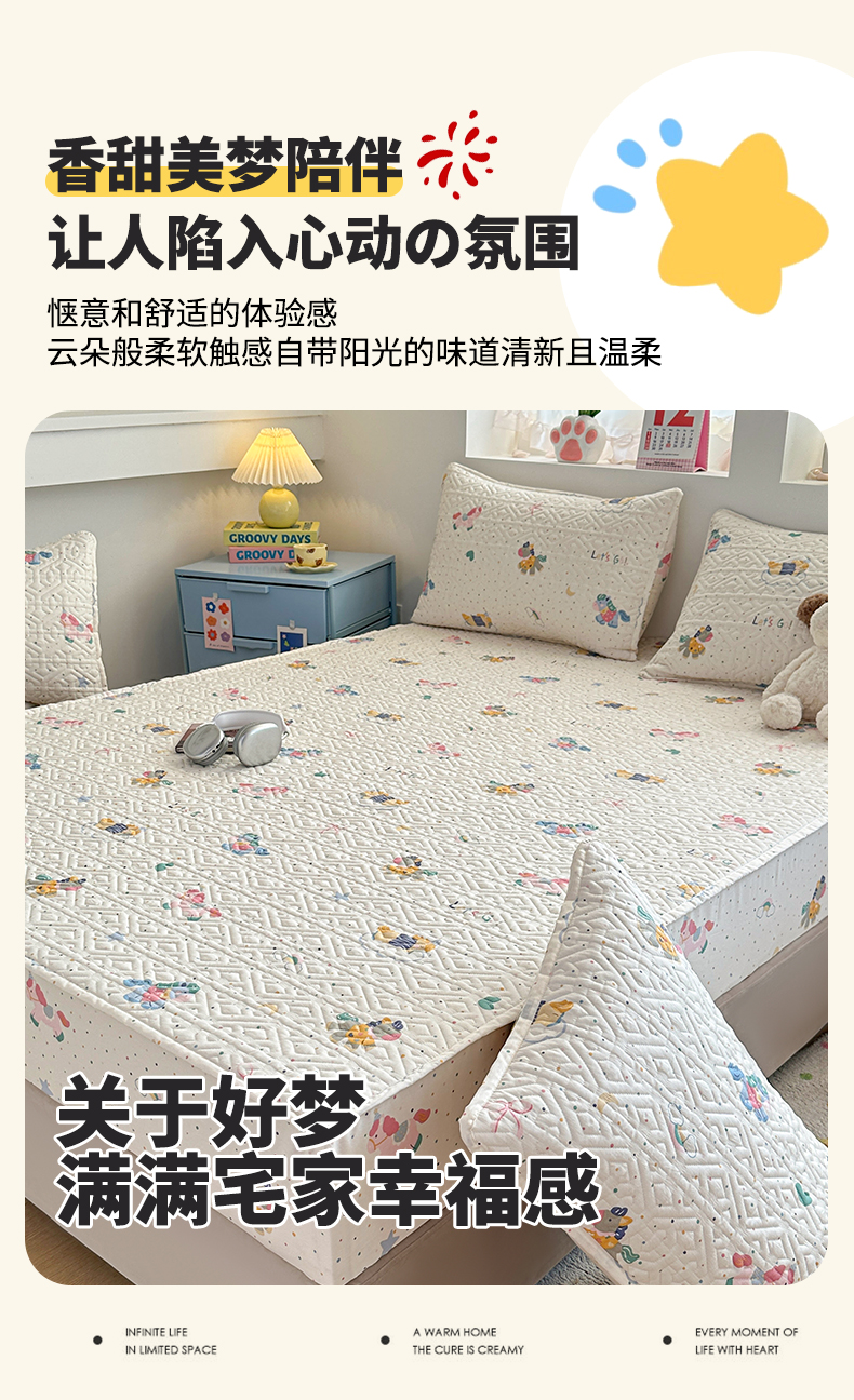 (总)忘忧草 2026新款清新简约全棉印花夹棉床笠