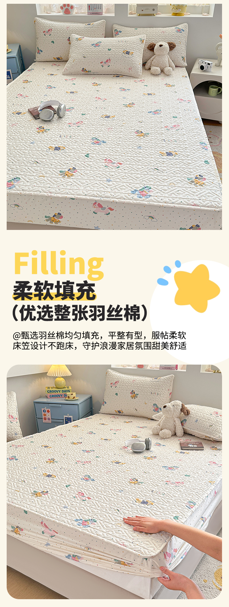 商品名称:(总)忘忧草 2026新款清新简约全棉印花夹棉床笠
