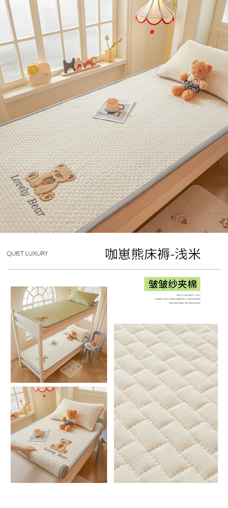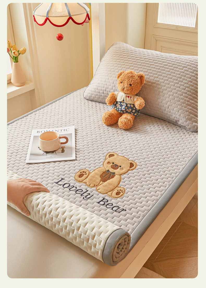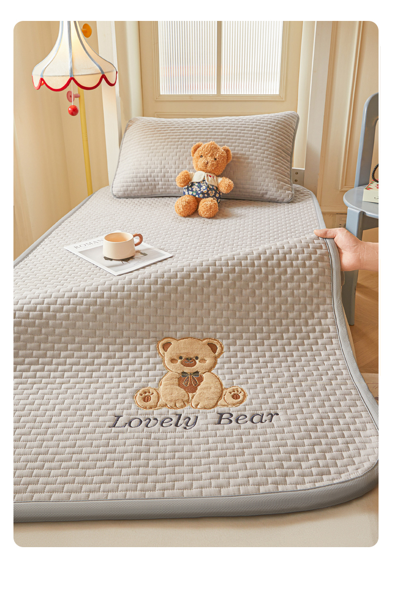 商品名称:(总)爱思凯家纺 2026新款皱皱纱-夹棉咖崽熊床褥-学生款