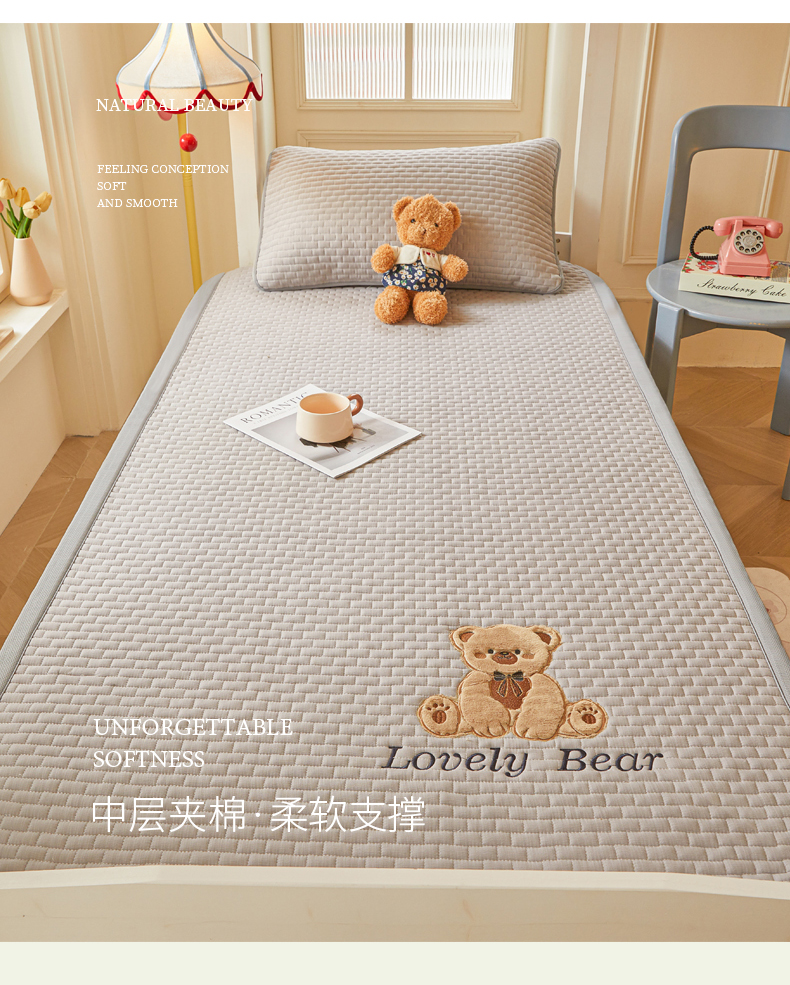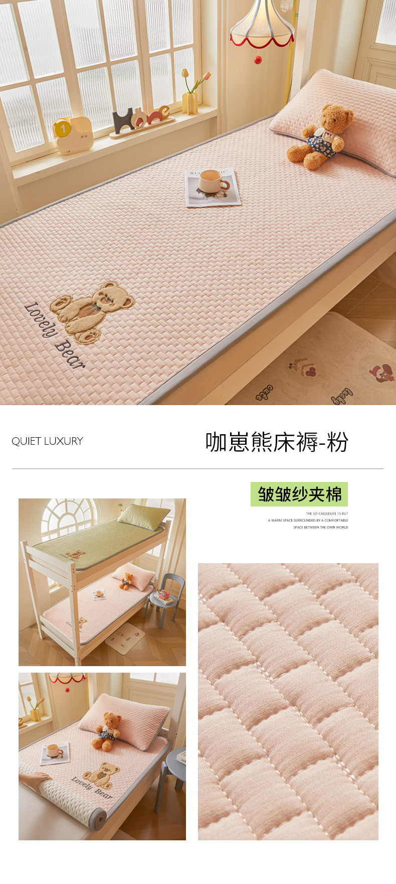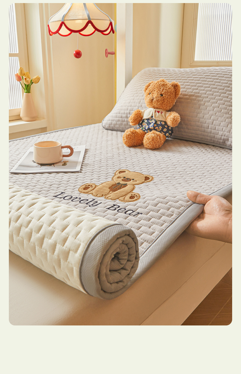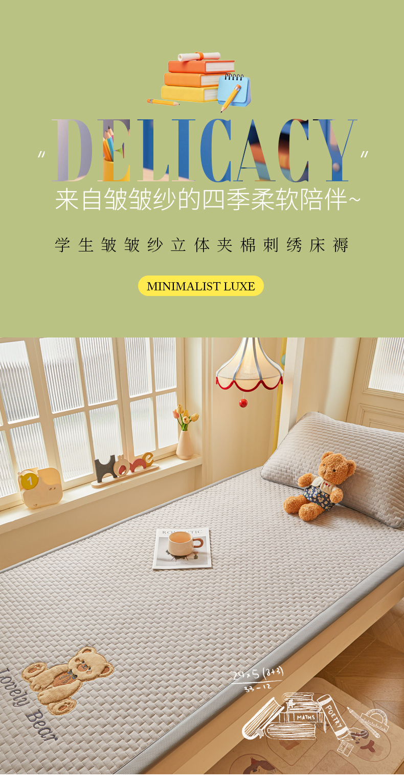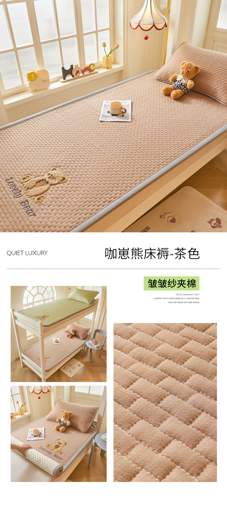 (总)爱思凯家纺 2026新款皱皱纱-夹棉咖崽熊床褥-学生款