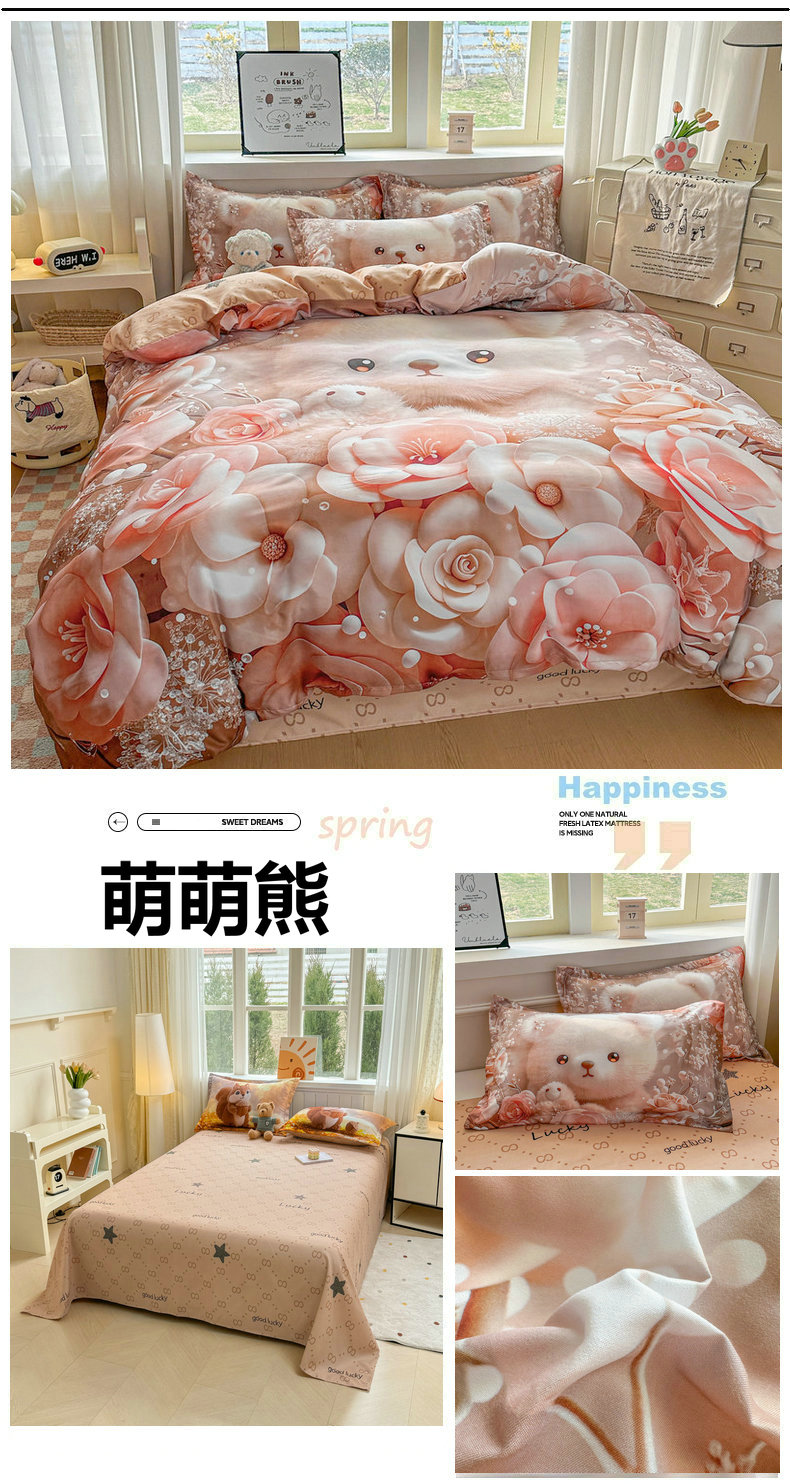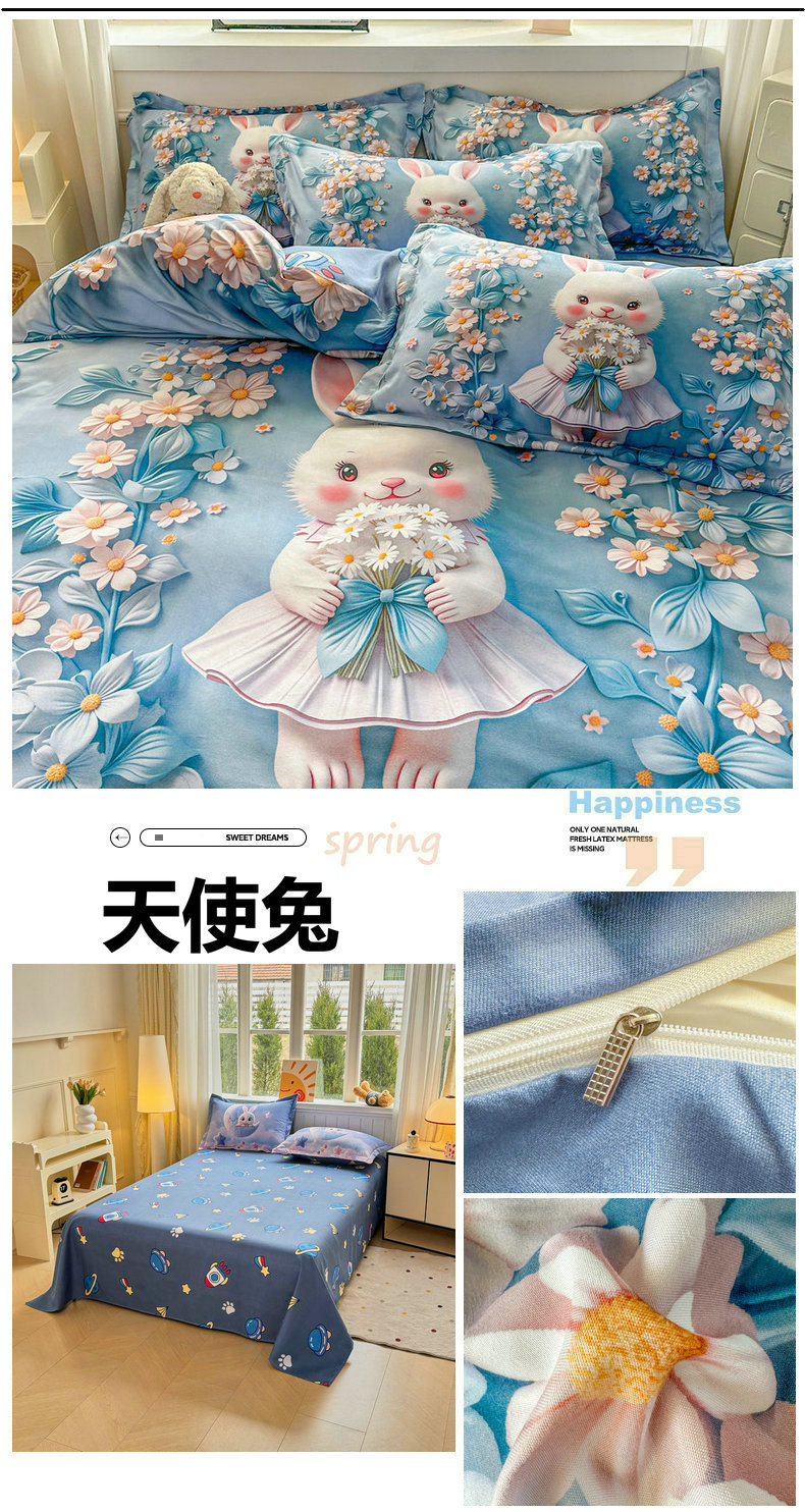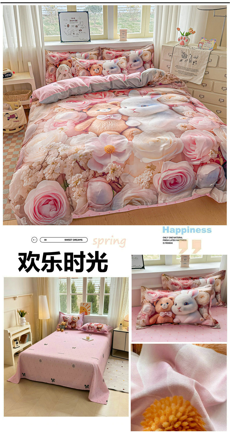 当前位置: 91家纺网 > 商品网购 > 床品套件 > 四件套 > 普通磨毛四件套 > 宝薇 2026春夏新款7D卡通加厚斜纹仿棉生态磨毛大版四件套 玫瑰兔