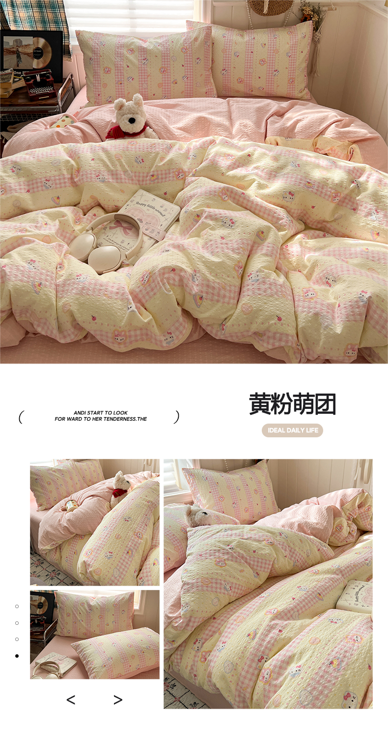 当前位置: 91家纺网 > 商品网购 > 床品套件 > 四件套 > 其它四件套 > 水木坊 2026春夏新款高品质泡芙普通款四件套 萌兔岛屿