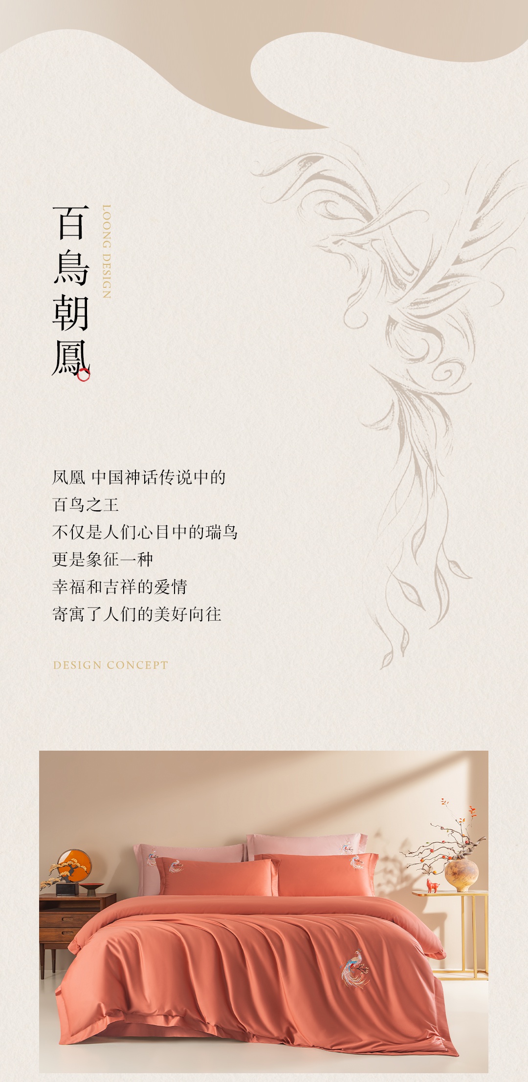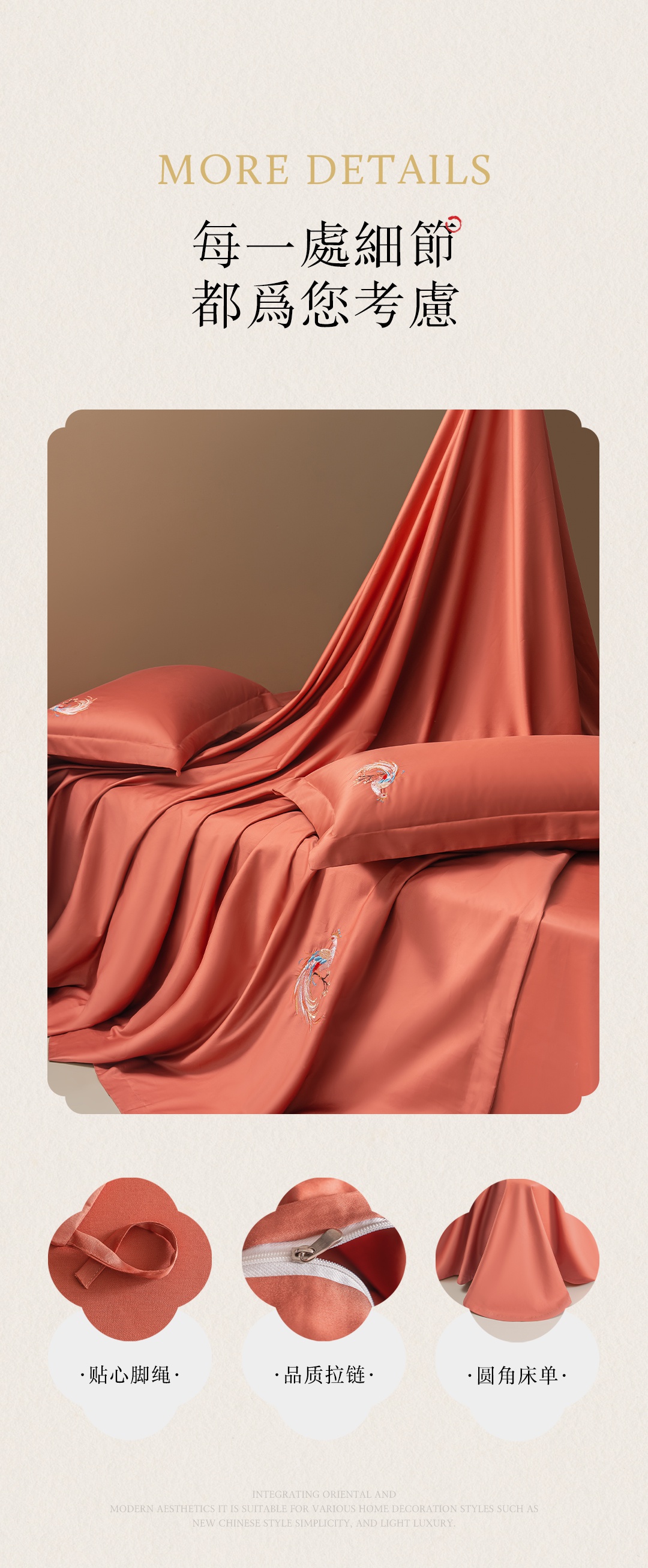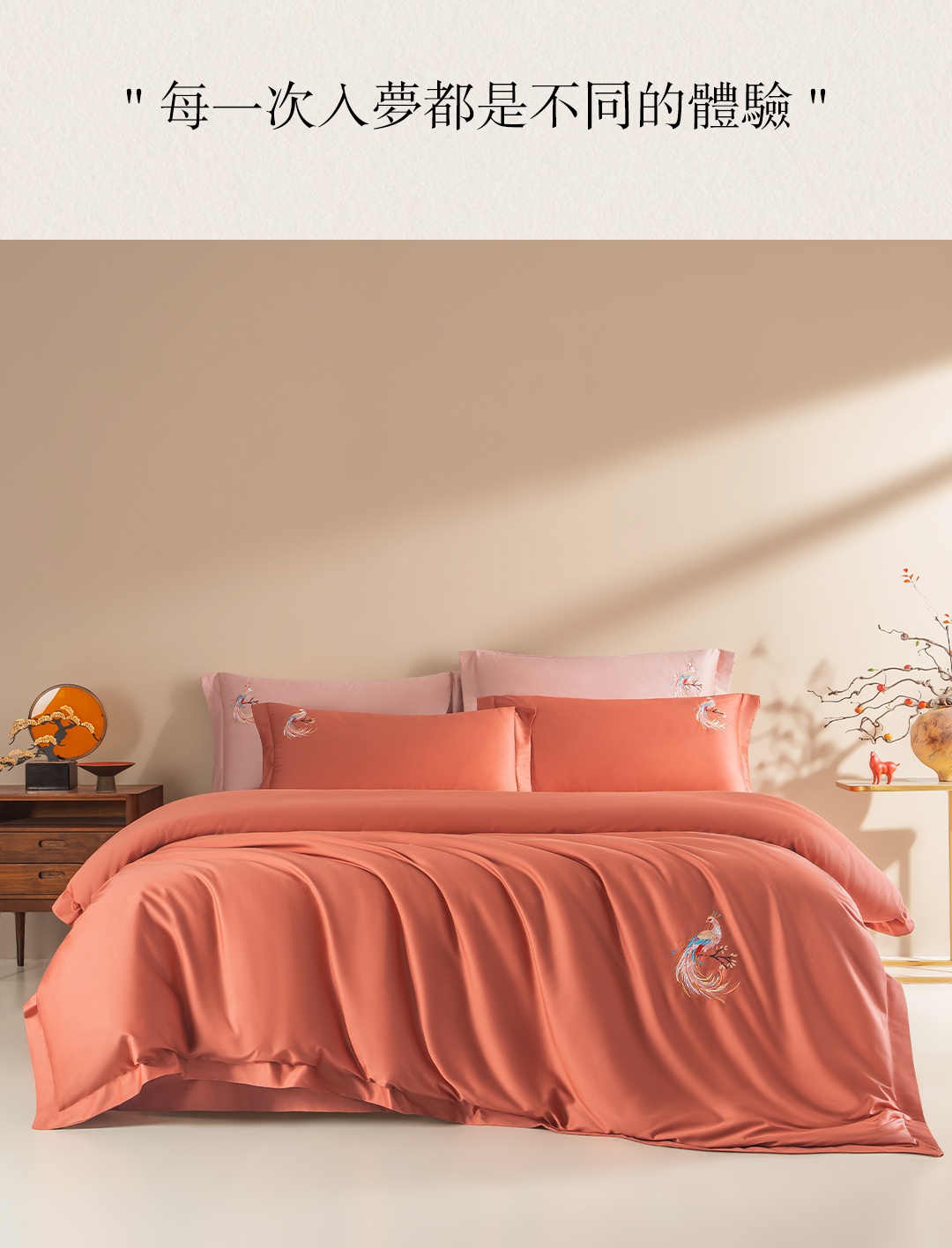 商品名称:佑金甜 2026新款100支全棉贡缎中国风新疆长绒棉纯色双拼四件套(礼盒塑封包装) 凤皇-赤