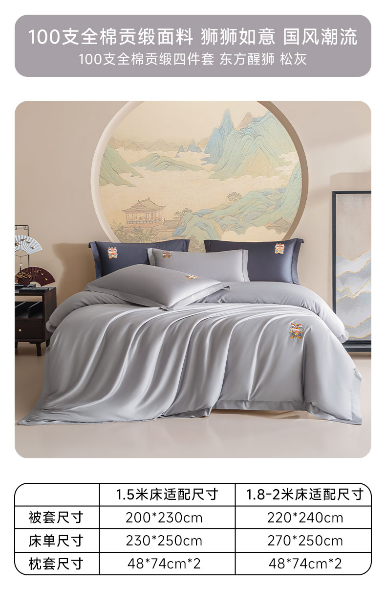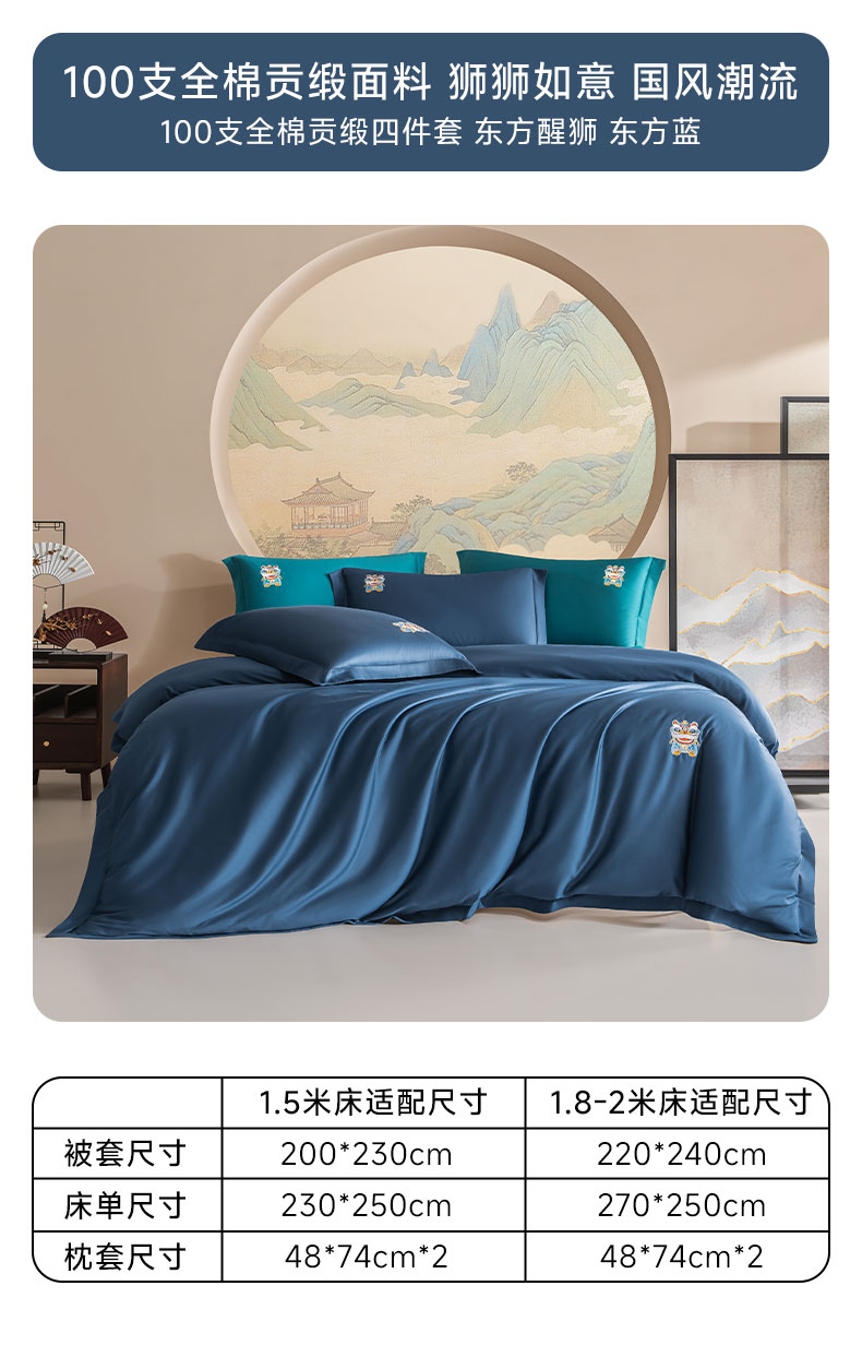 (总)佑金甜 2026新款100支全棉贡缎中国风新疆长绒棉纯色双拼四件套(礼盒塑封包装),凤皇-赤,凤皇-粉,凤皇-蓝,花旦-凤仙粉,花旦-樱落,花旦-祖母绿,中华醒狮-东方蓝,中华醒狮-松灰,中华醒狮-田园绿