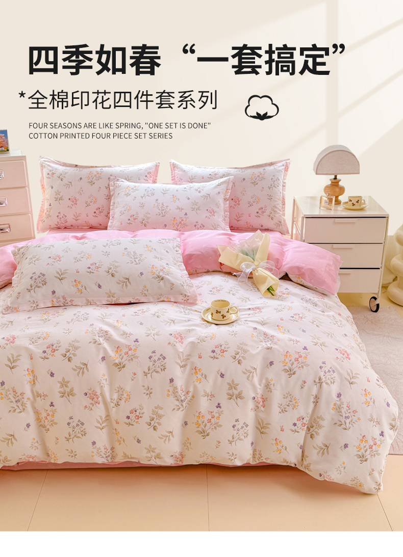 当前位置: 91家纺网 > 商品网购 > 床品套件 > 四件套 > 全棉普通四件套 > 佑金甜 2026新款精梳全棉印花四件套 小梨漫