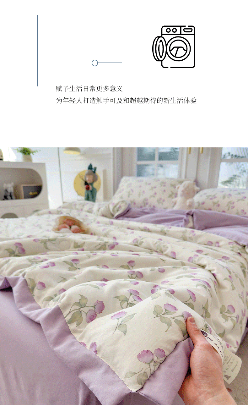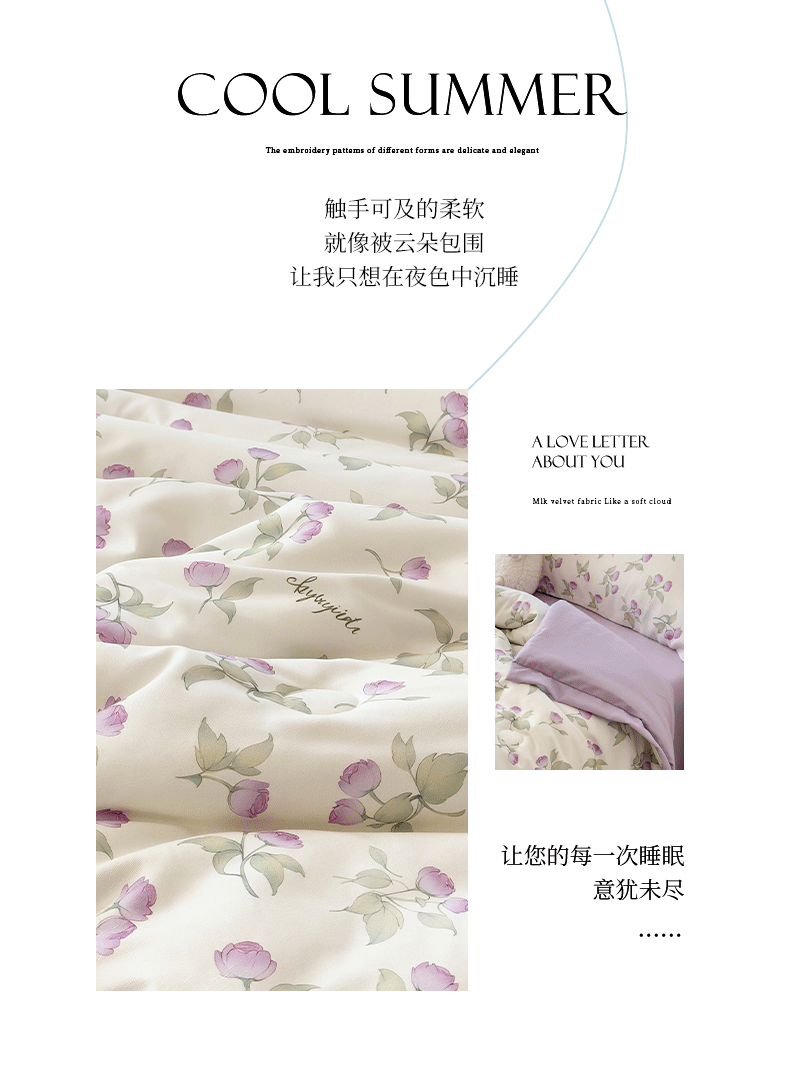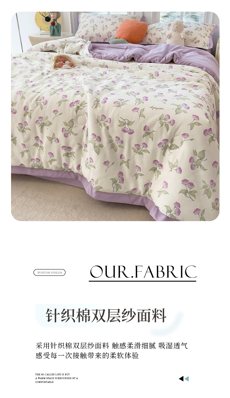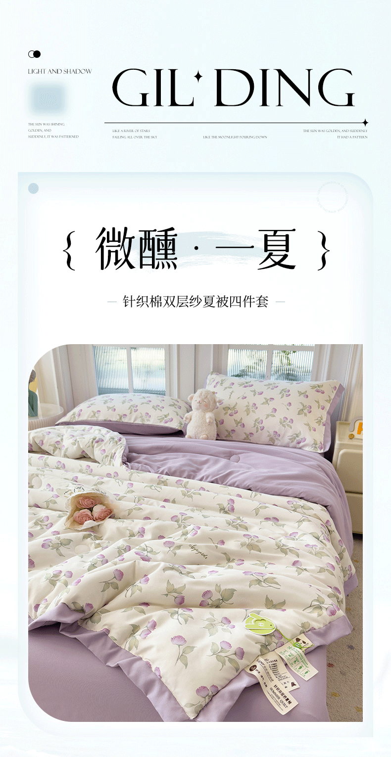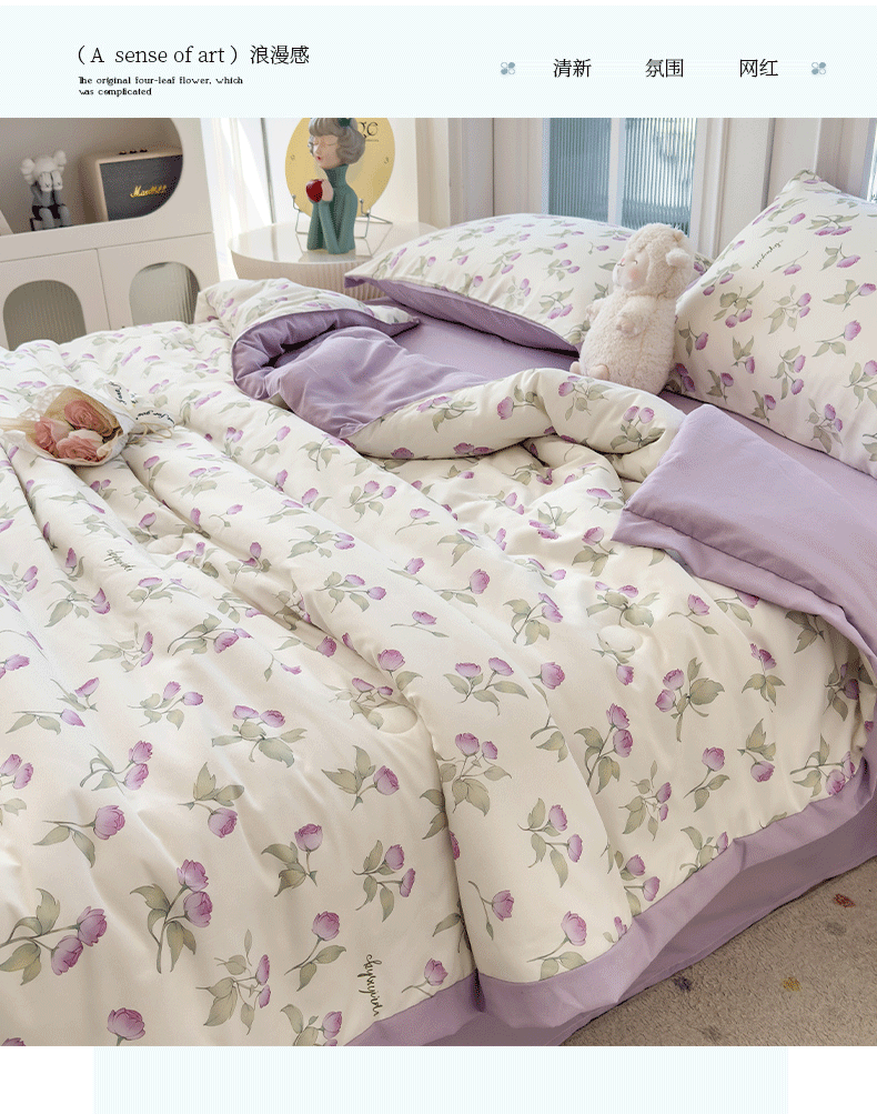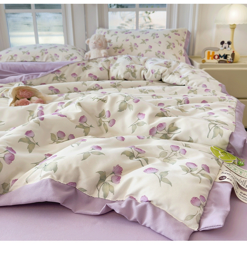 当前位置: 91家纺网 > 商品网购 > 床品套件 > 四件套 > 夏被四件套 > 悦织语 2026新款A类针织棉双层纱韩版夏被四件套空调被 紫风铃