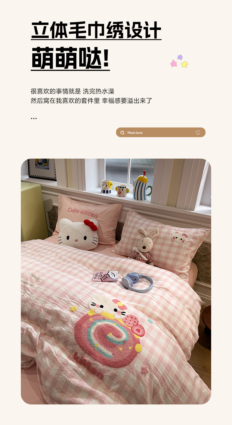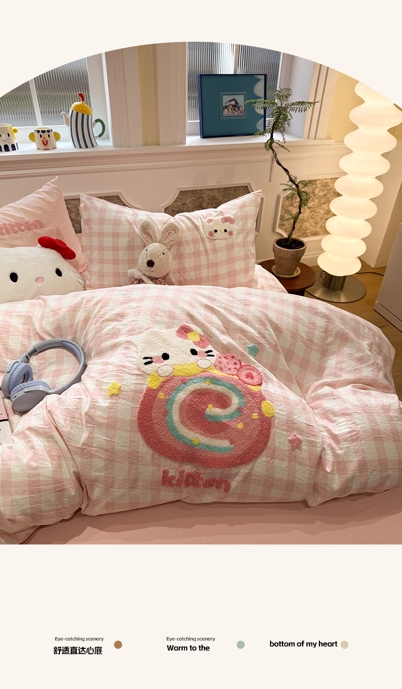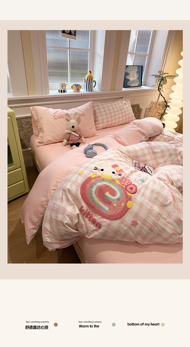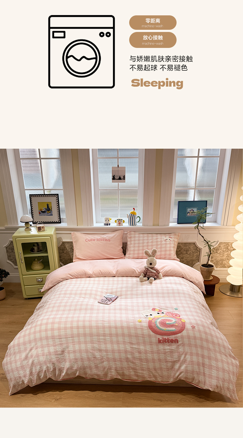 当前位置: 91家纺网 > 商品网购 > 床品套件 > 四件套 > 毛巾绣四件套 > 我心家纺 2026新款水洗棉毛巾绣四件套 猫咪瑞士卷-粉格
