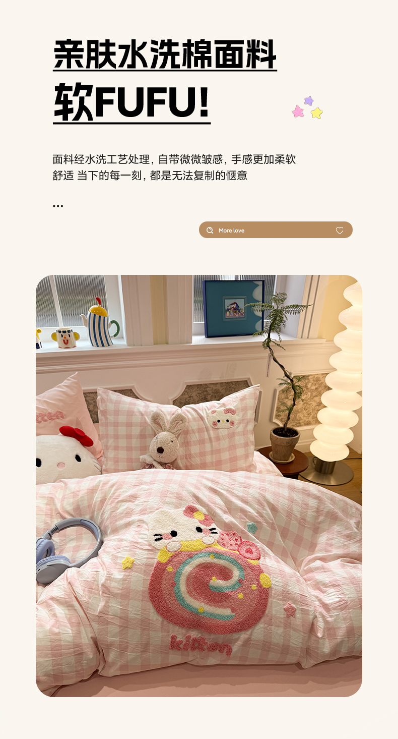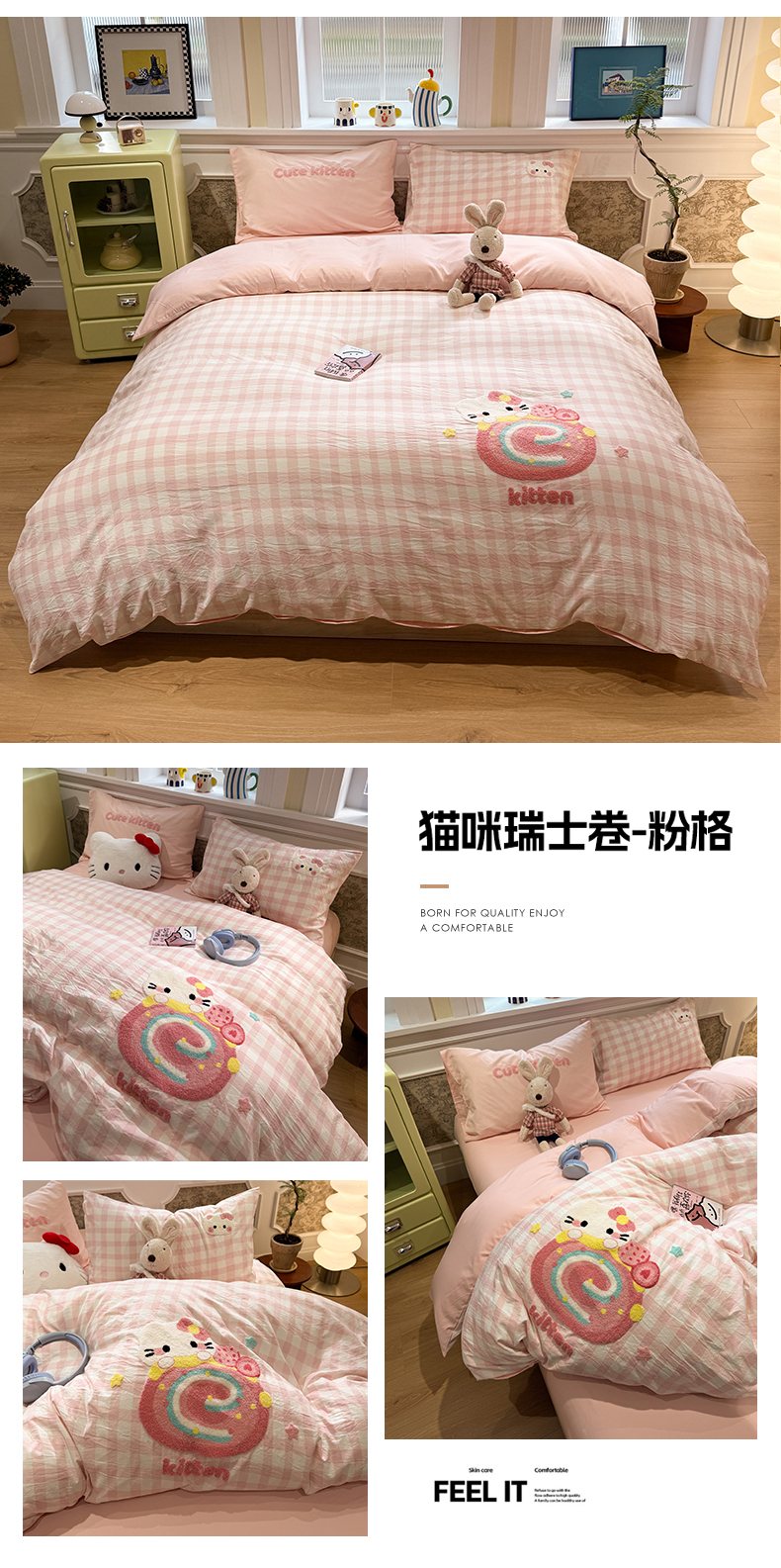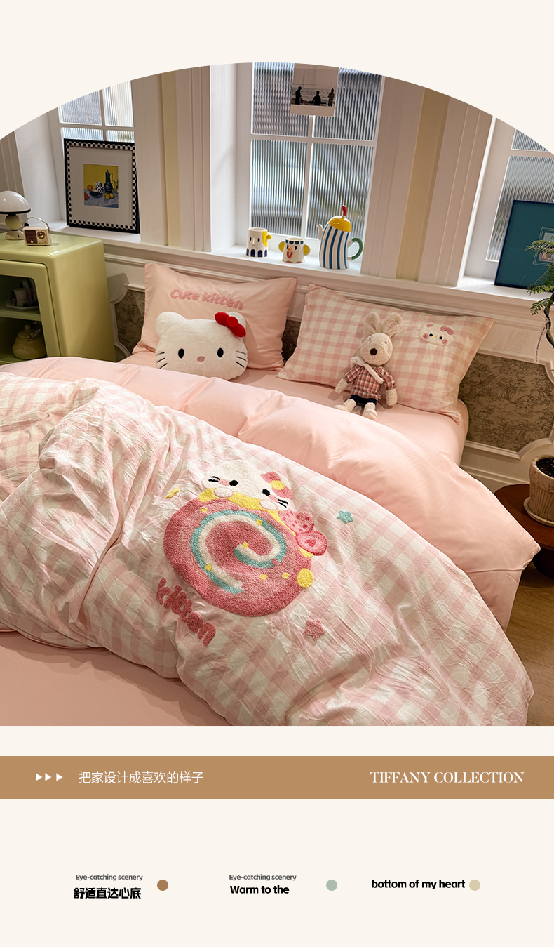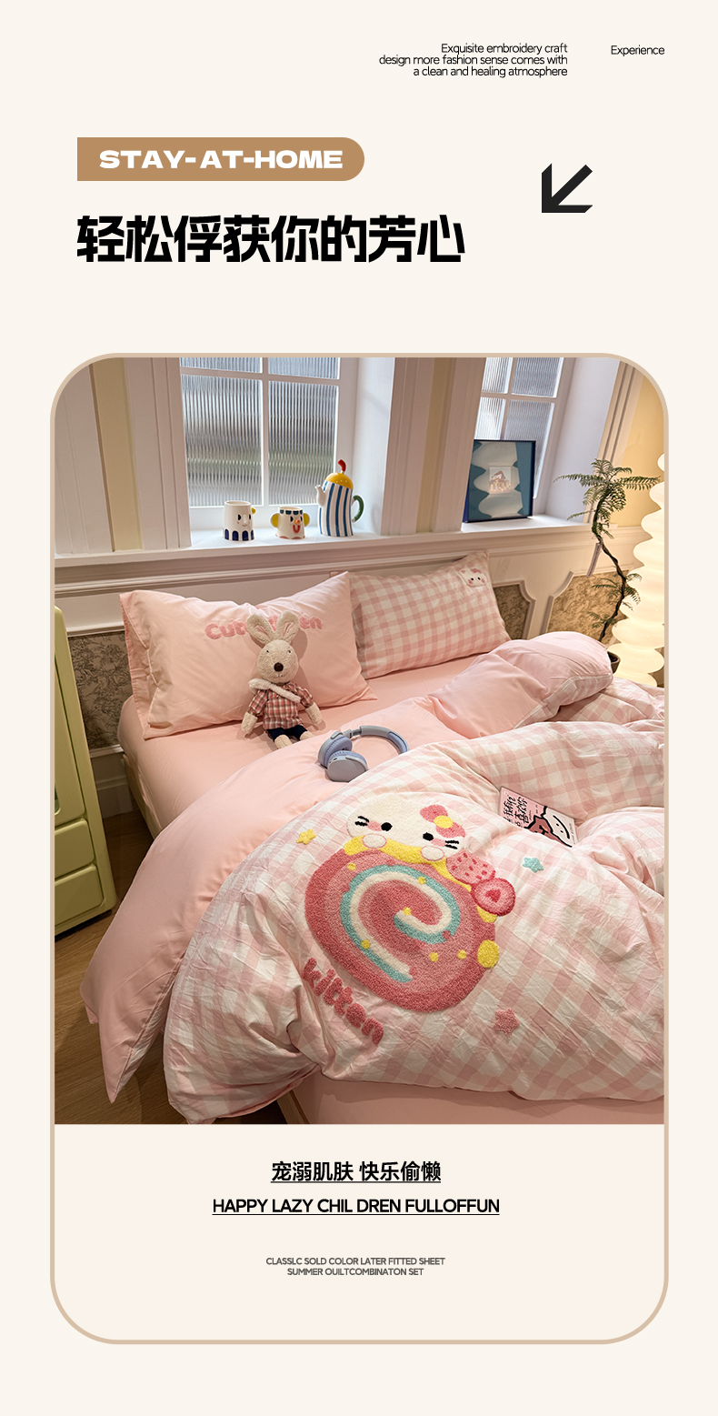 当前位置: 91家纺网 > 商品网购 > 床品套件 > 四件套 > 毛巾绣四件套 > 我心家纺 2026新款水洗棉毛巾绣四件套 猫咪瑞士卷-粉格