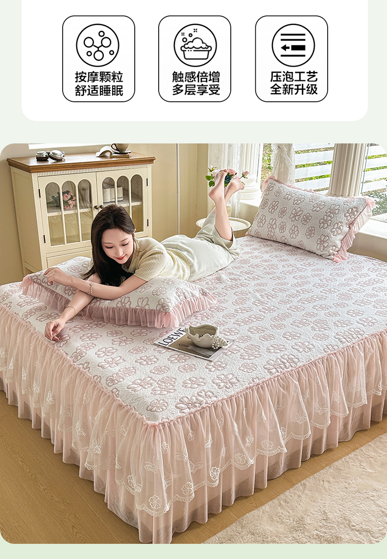 当前位置: 91家纺网 > 商品网购 > 床上用品 > 凉席 > 其他凉席 > 恒爱家纺 2026新款A类凉感冰豆豆床裙席三件套 风花雪月-粉