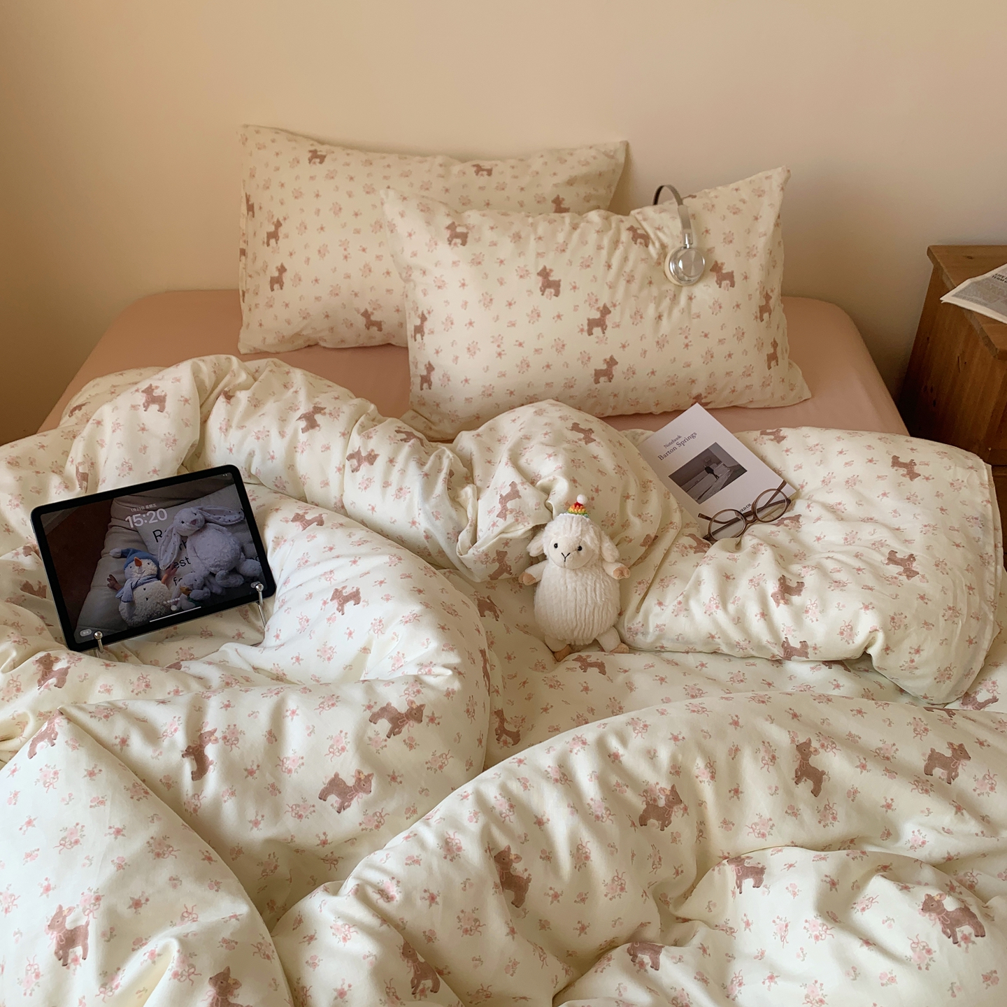 当前位置: 91家纺网 > 商品网购 > 床品套件 > 四件套 > 全棉普通四件套 > 桃喜 2026春夏新款全棉纯棉双层纱系列四件套 双层纱-咖色蝴蝶结