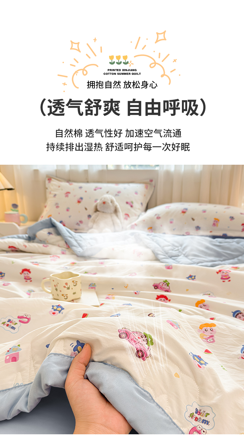 (总)西域种棉人·千百笠 2026新款A类新疆棉花夏凉被加宽包边水洗棉卡通印花吸湿透气棉花夏被空调被,云感宝莉马,云感波点,云感草莓,云感动物城,云感队列兔,云感红苹果,云感蝴蝶结,云感花彩,云感花彩兔,云感花梦女孩,云感花之蔓,云感晶咪,云感腊肠狗,云感萌仔,云感奶芙猫,云感派对,云感青苹果,云感瑞拉,云感生日狗,云感生日派,云感甜品乐园,云感小繁花,云感小熊,云感星星,云感星星草莓,云感幸运喵,云感叶初语,云感郁金兔