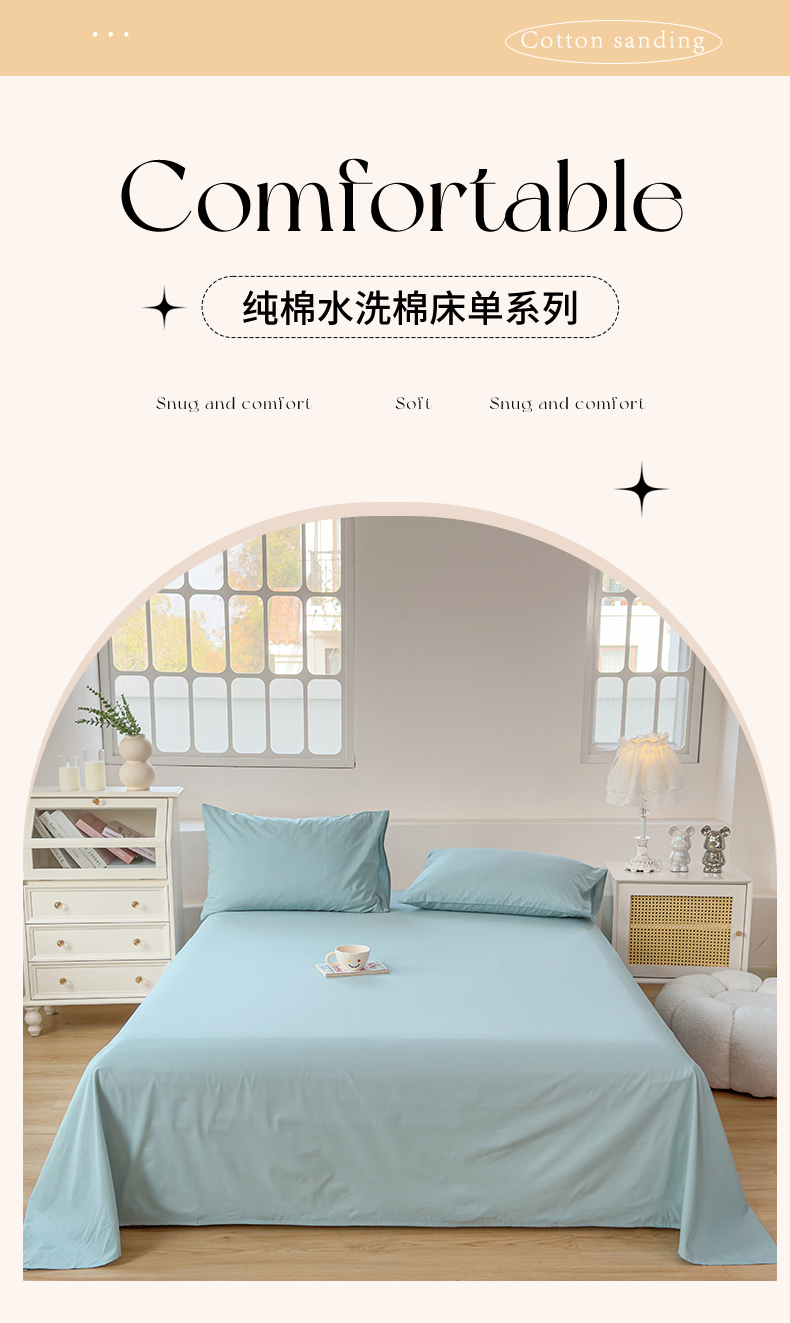 • 91家纺网 家纺一手货源 找家纺 (总)柠萌家居 2026年新款全棉A类母婴级水洗棉纯棉床单纯色系列单品,宝石蓝,薄荷绿,本白,豆沙,繁星蓝,粉紫,枫叶红,高级灰,卡其,马丁桔,摩卡,奶黄,浅粉,浅灰,浅蓝,浅紫,星空蓝,中灰,紫罗兰,组合图仅供参考不可下单