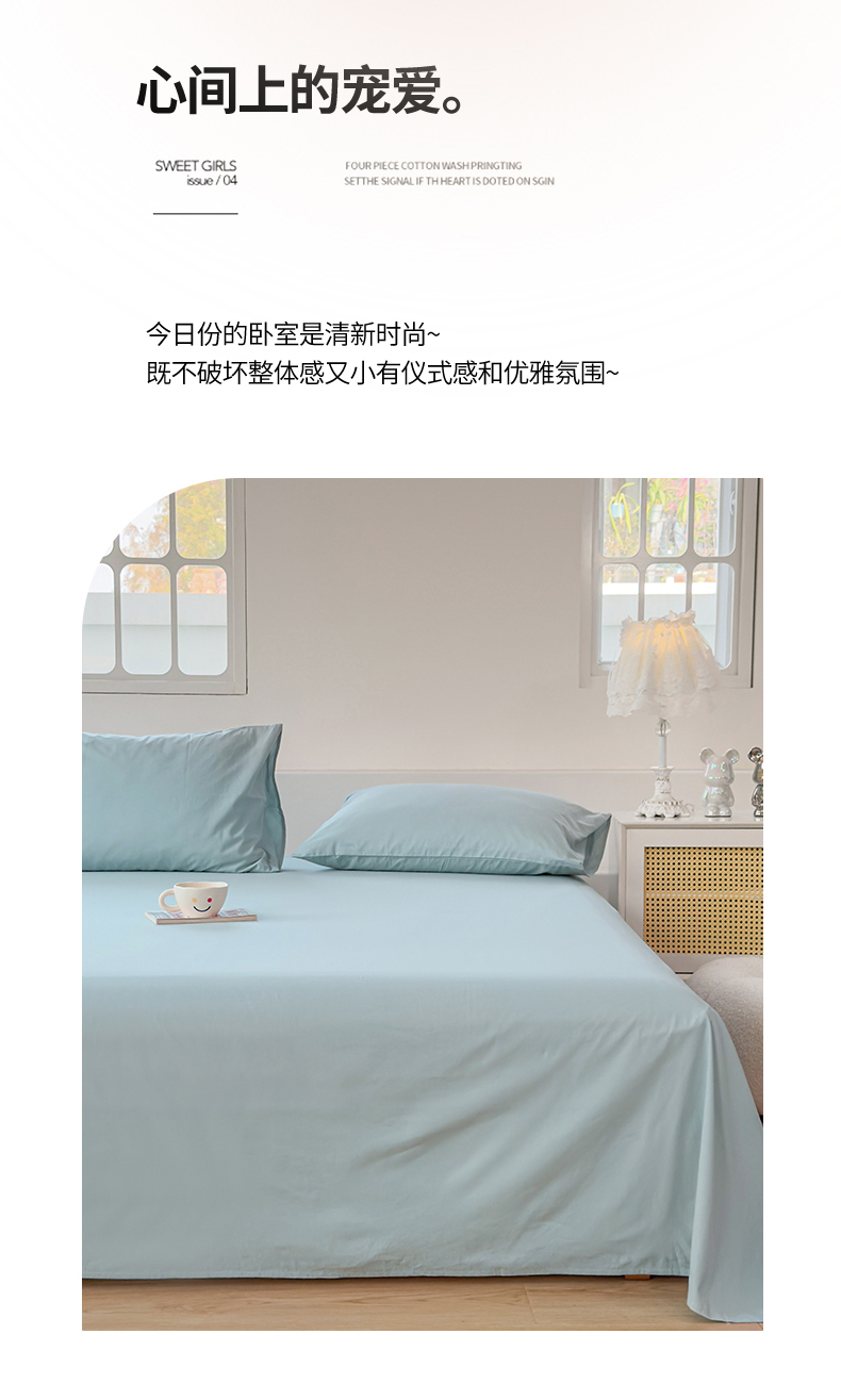 (总)柠萌家居 2026年新款全棉A类母婴级水洗棉纯棉床单纯色系列单品,宝石蓝,薄荷绿,本白,豆沙,繁星蓝,粉紫,枫叶红,高级灰,卡其,马丁桔,摩卡,奶黄,浅粉,浅灰,浅蓝,浅紫,星空蓝,中灰,紫罗兰,组合图仅供参考不可下单