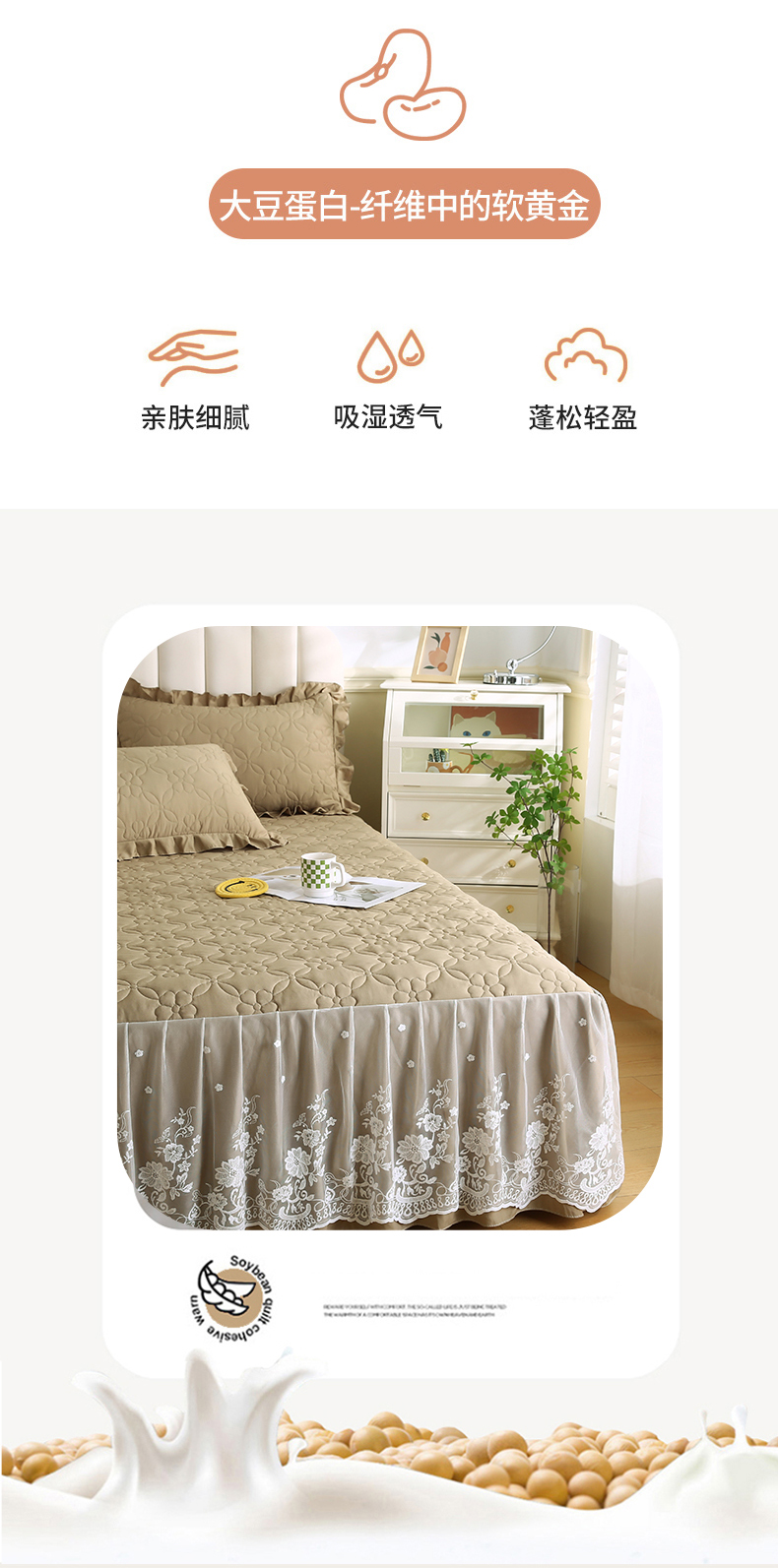 • 91家纺网 家纺一手货源 找家纺 怡源梦 2026新款清新雅致单被套床裙单品床裙单件 新黄绿