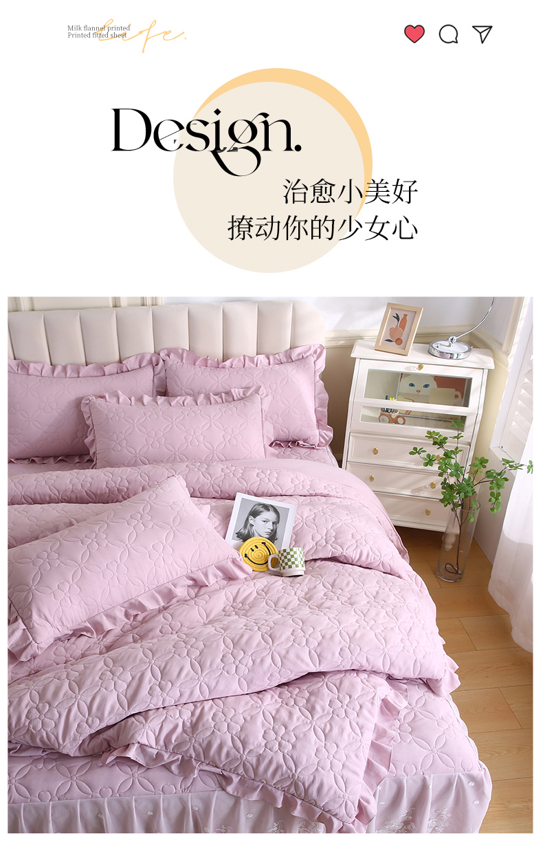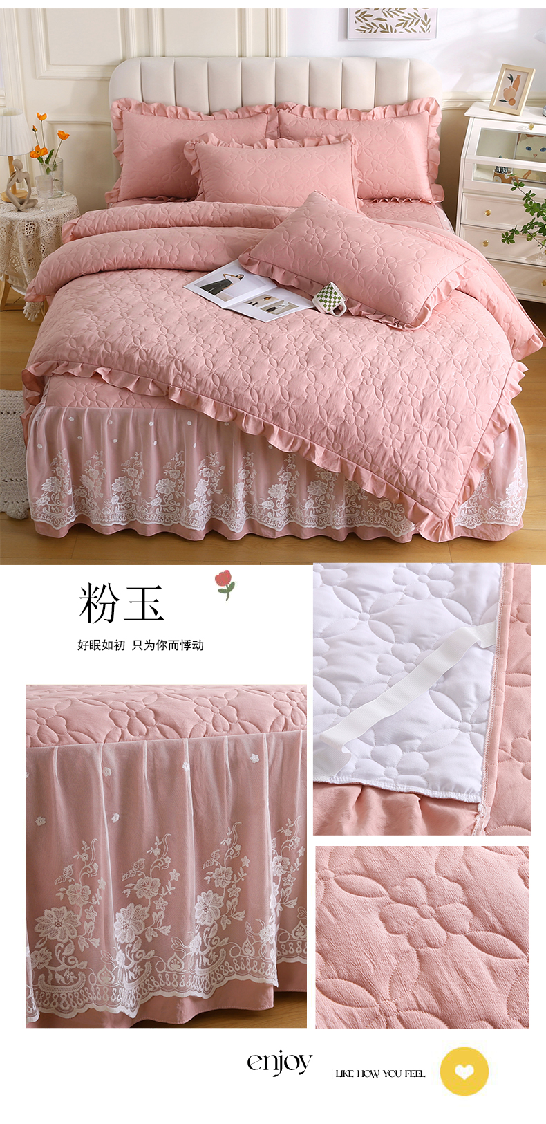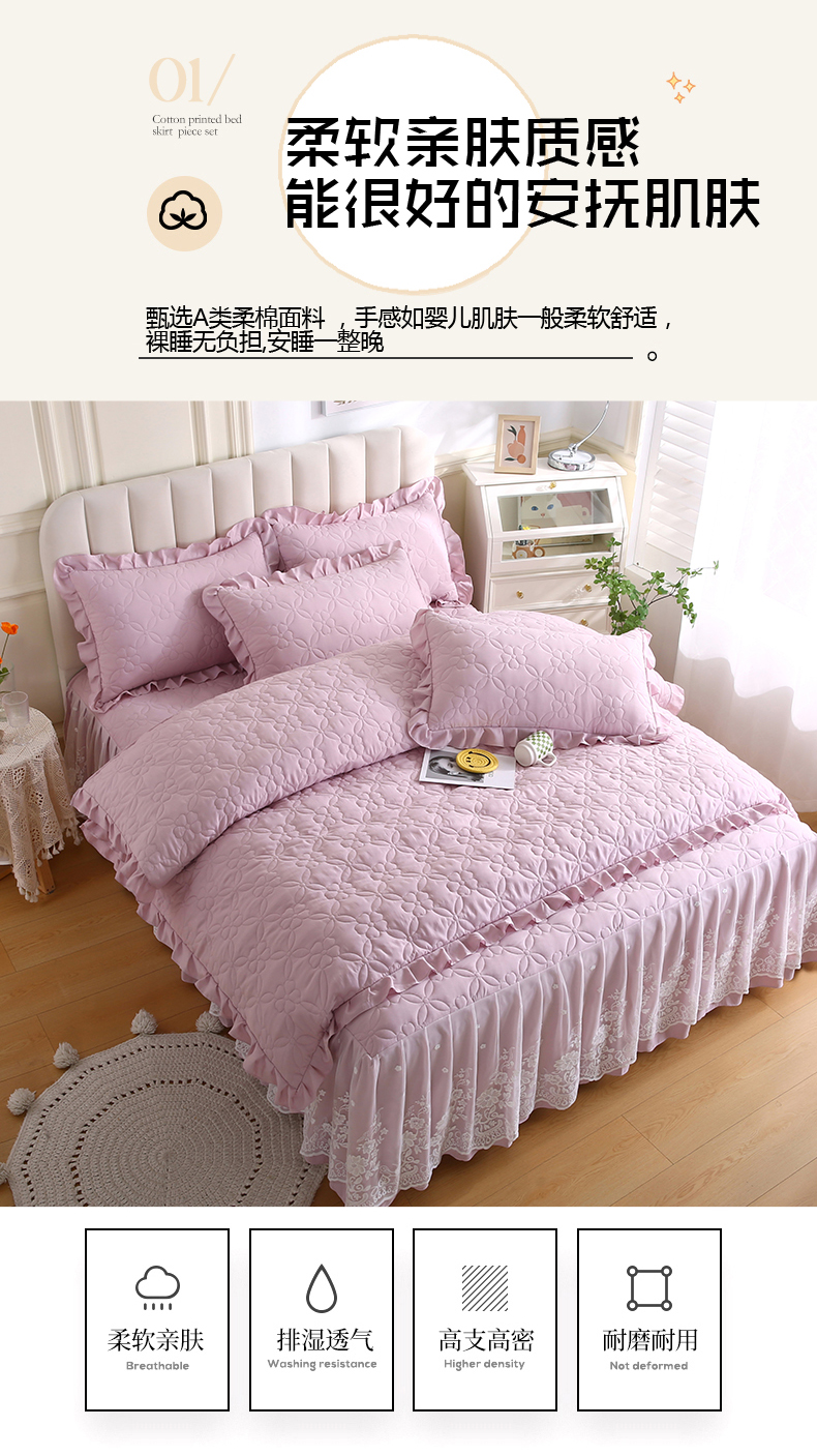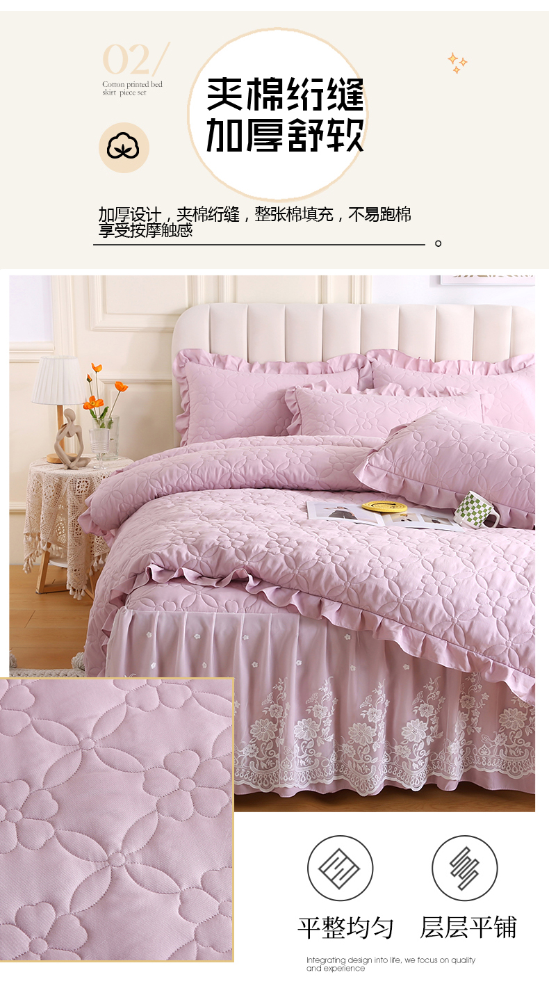 (总)源梦家纺 2024新款幸运草夹棉单床裙,纯白,大红,豆沙,粉色,灰色,兰色,米黄,玉色